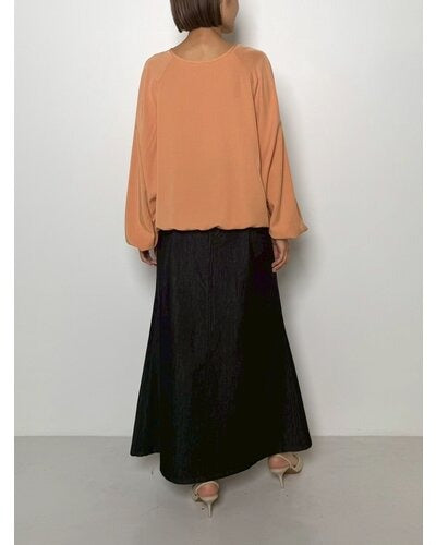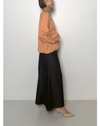 This skirt is made from soft denim fabric with a cellulose blend, and has a feminine feel with a moderate drape and mermaid line.