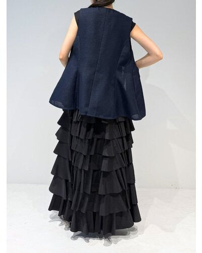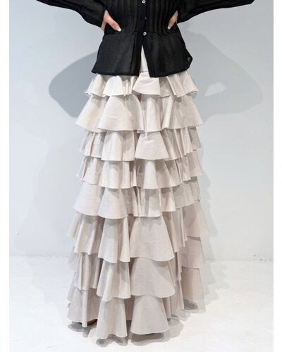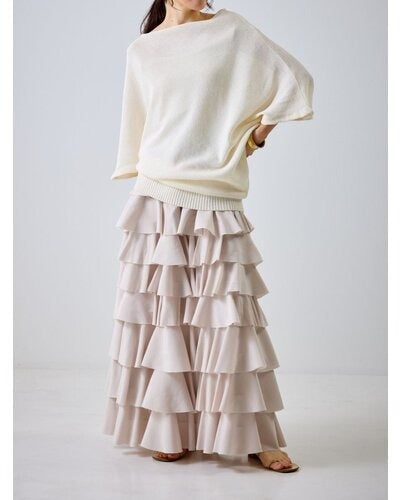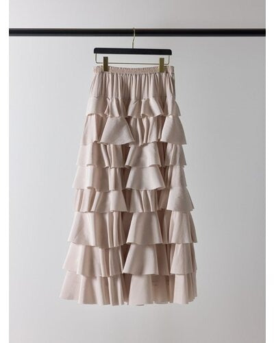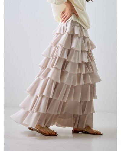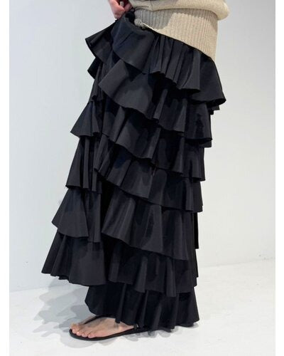This tiered skirt is made from lightweight, crisp, ultra-thin satin and adorned with plentiful ruffles. It makes a statement as the focal point of any outfit, but its subtle sheen adds a touch of elegance to sophisticated attire without being too casual. The carefully calculated amount and length of the ruffles naturally elevates your style, and the swaying silhouette creates a soft, feminine impression. Simply pair it with a simple top for a look that's both stylish and relaxed.