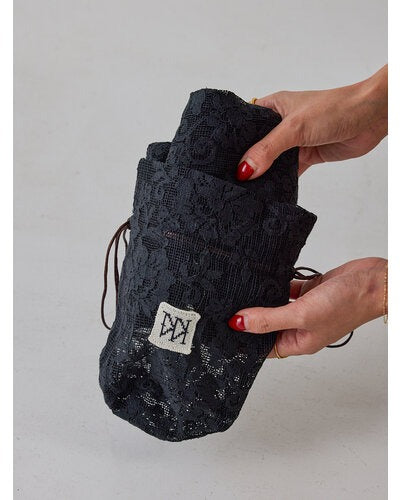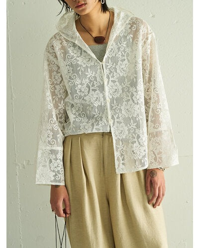 This portable lace hoodie can be stored inside a drawstring bag made from the same material as the all-lace hoodie shirt. By deliberately incorporating delicate lace into the hoodie design, it has a sporty, understated look that's perfect for this season. The front is open with shell buttons, and can be worn as a top when closed, or as a lightweight jacket when open. It's a piece you'll want to carry with you at all times to protect yourself from the air conditioning at the office or while commuting. Simply keeping it in your bag will lift your spirits, and wearing it around your waist for a trendy look.