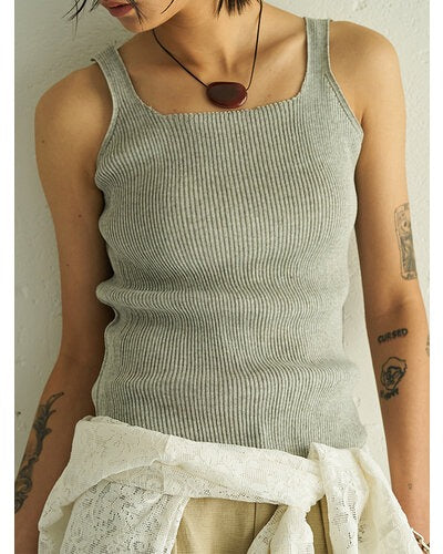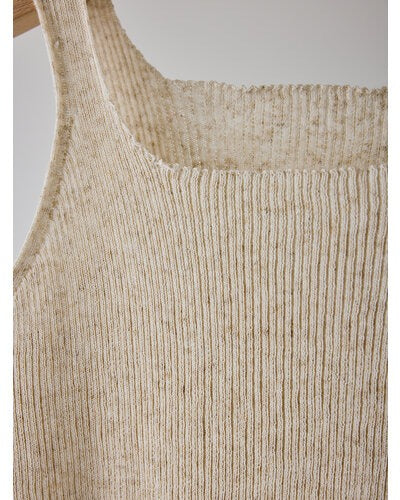 This is a ribbed knit tank top made from crisp linen-blend yarn.
