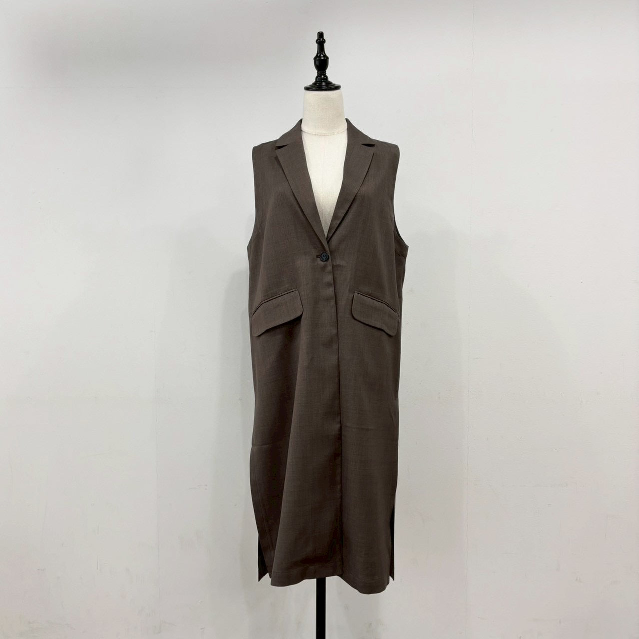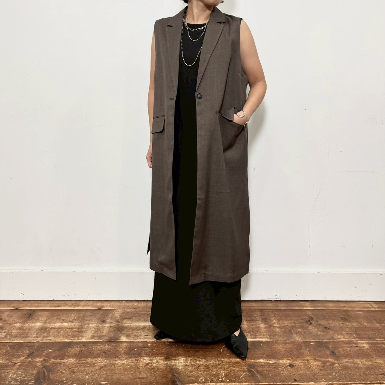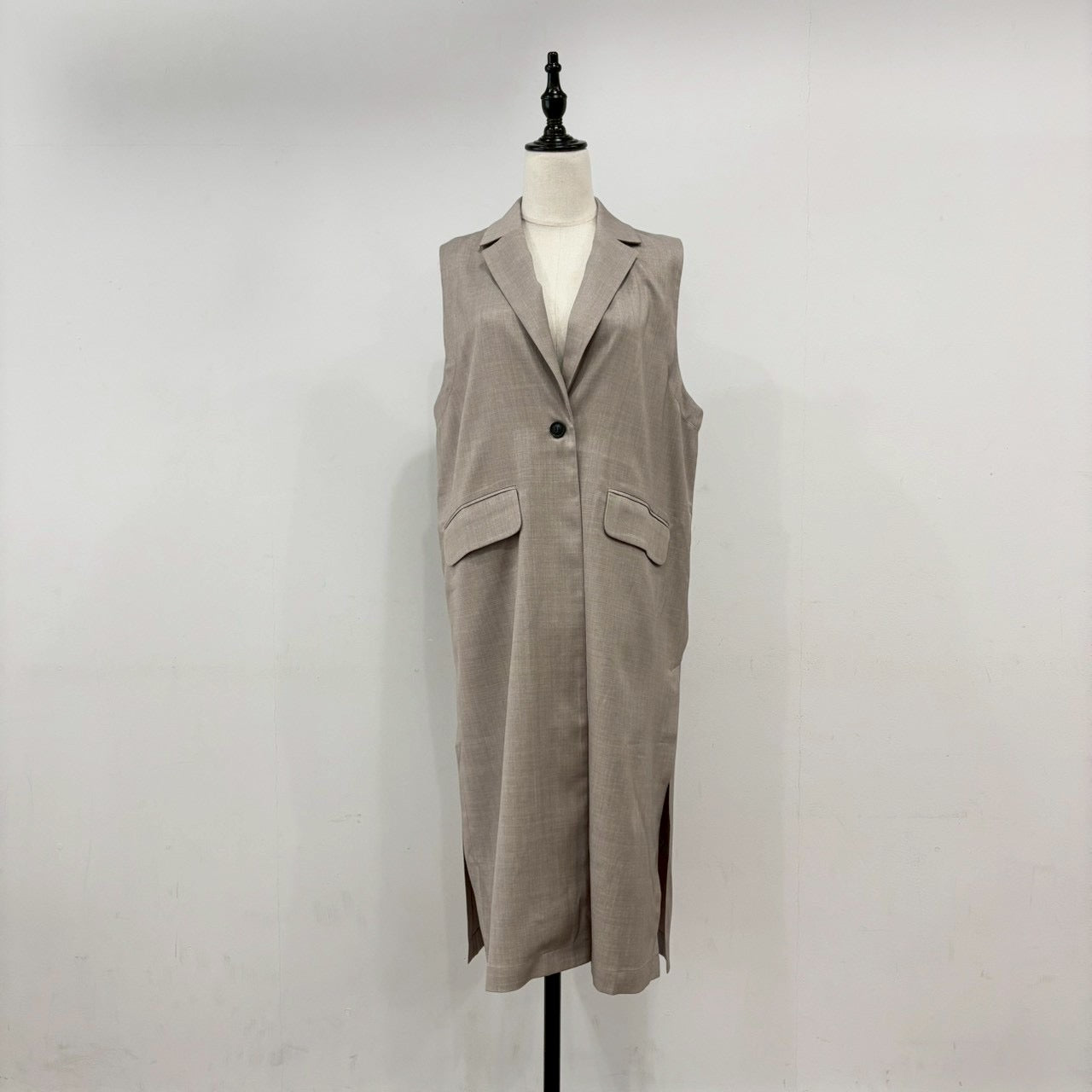 linen-like twill long gilet