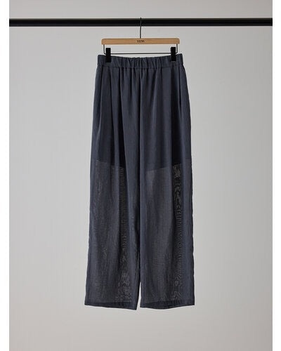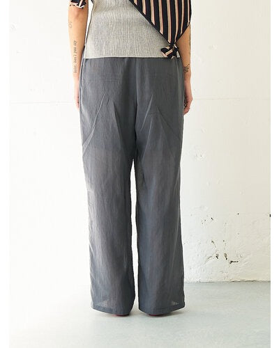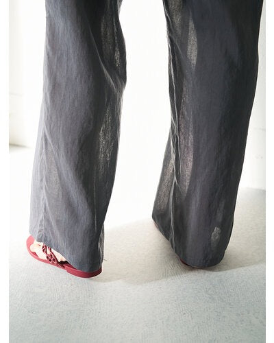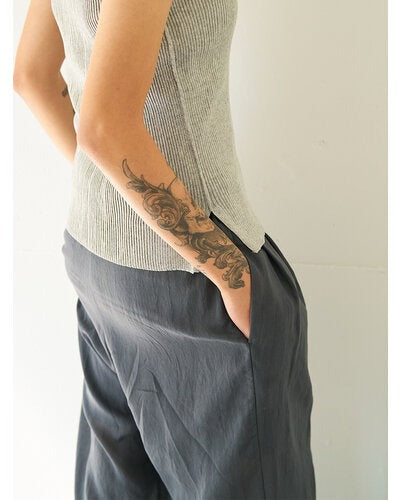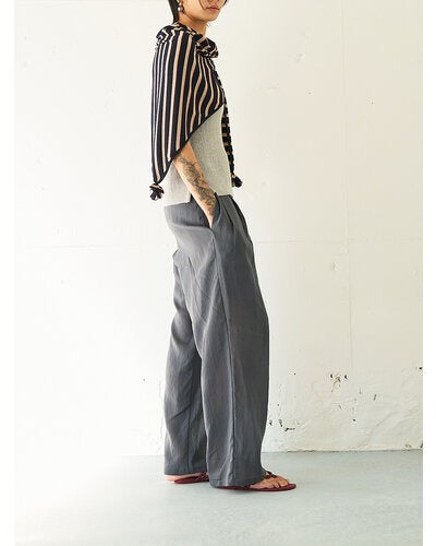 We've deliberately used an ultra-thin, soft material that's usually used for blouses for these pants. These pants have a cool, mannish feel that can be worn even in the middle of summer. Their thinness and lightness are their key feature. They've undergone a wash and resin treatment, and we've made repeated improvements to make wrinkles less noticeable. While simple, they're designed to capture the kind of pants you'd want.