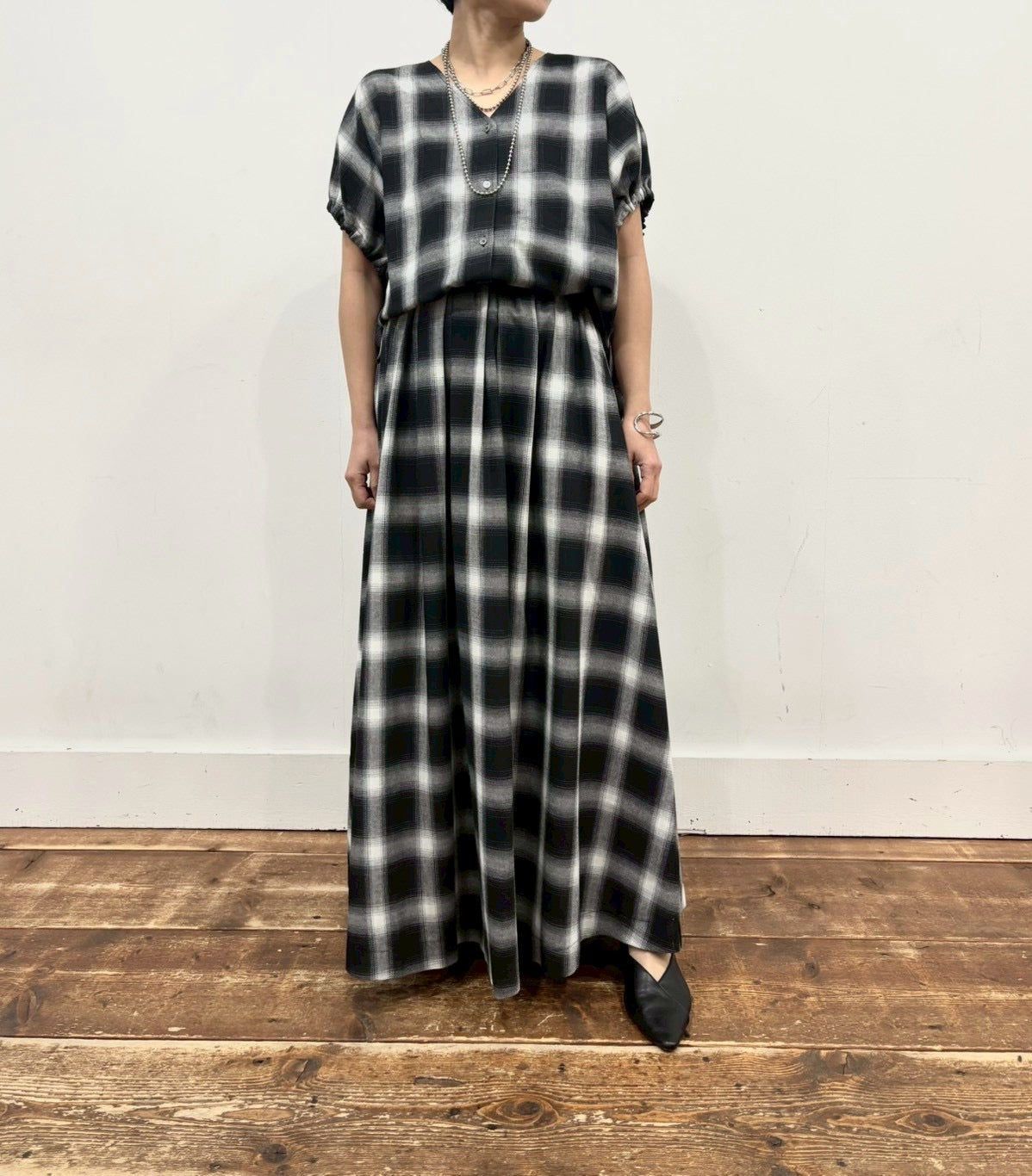 [siro de labonte 2026 SS vol.2]ombre check tuck flare skirt