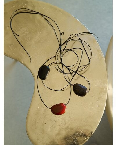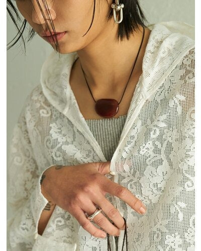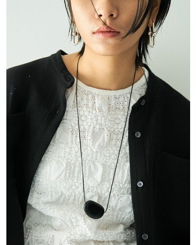 平たいお豆を彷彿させる天然石と本革紐の組み合わせはシンプルながらも一際目を引くミニマルなネックレスとなっております。天然石は職人さんがひとつひとつカットして形を作り、艶が出るよう長時間磨いて仕上げております。スライドビーズ付で簡単に長さ調節が可能なので、ロングにして大人っぽくつけたり、短くチョーカーの様にしてよりミニマルな雰囲気にしても◎先端のチャームはYENNオリジナルパーツとなっており、金具は全てSV925素材を使っているので全体的に上質な印象に。※天然石は天然素材の為、一つ一つ色味やサイズに若干の個体差が生じますので予めご了承下さい。