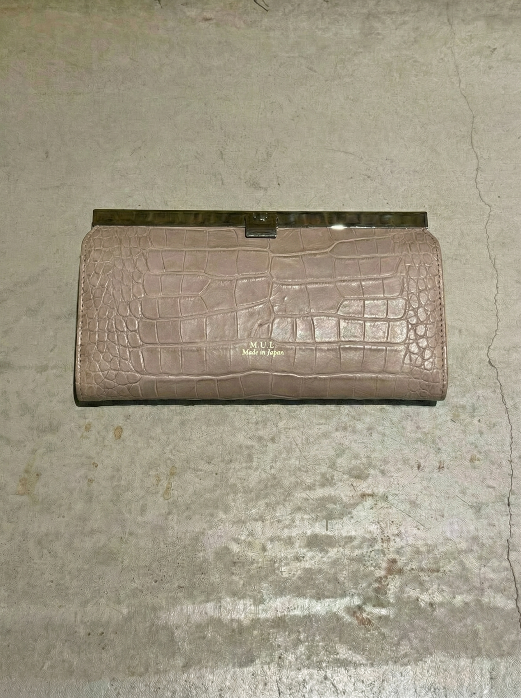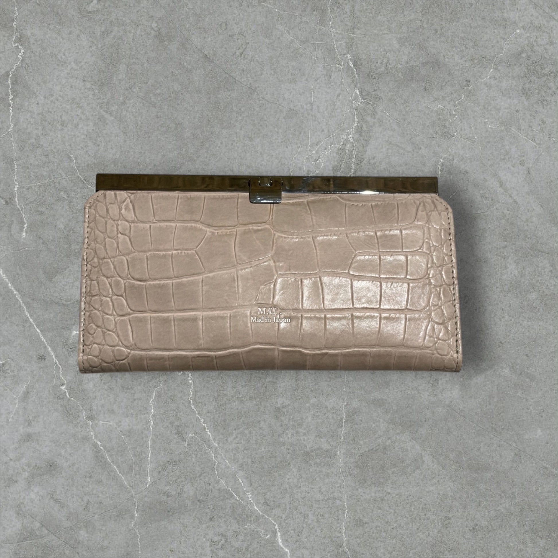 【限定】506.クロスバーロングウォレット グレージュ クロコダイル型押し マットゴールド金具 MUL161