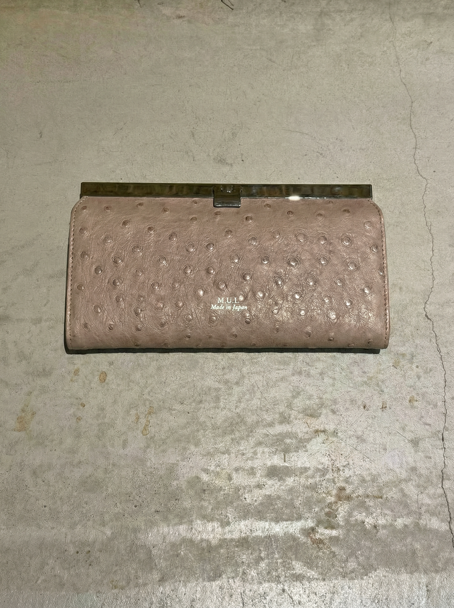 【限定】507.クロスバーロングウォレット グレージュ オーストリッチ型押し マットゴールド金具 MUL161