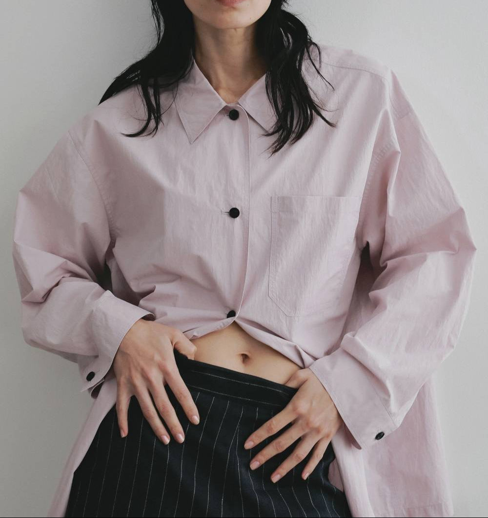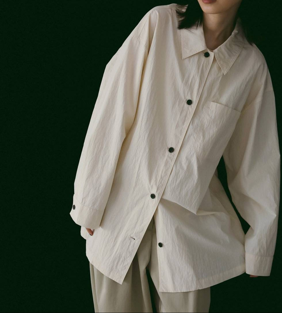 ステンカラーデザインで仕上げたオーバーシャツ。