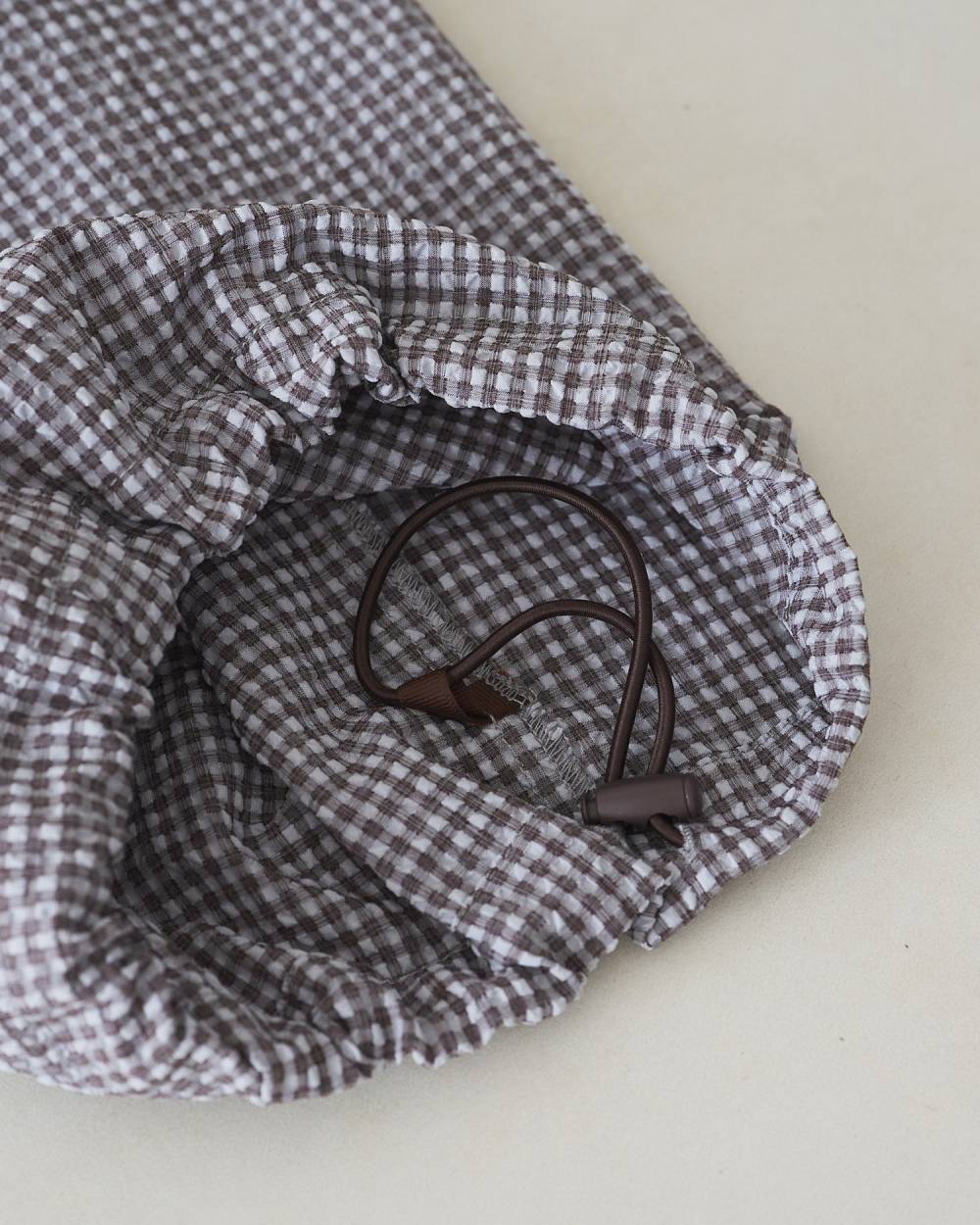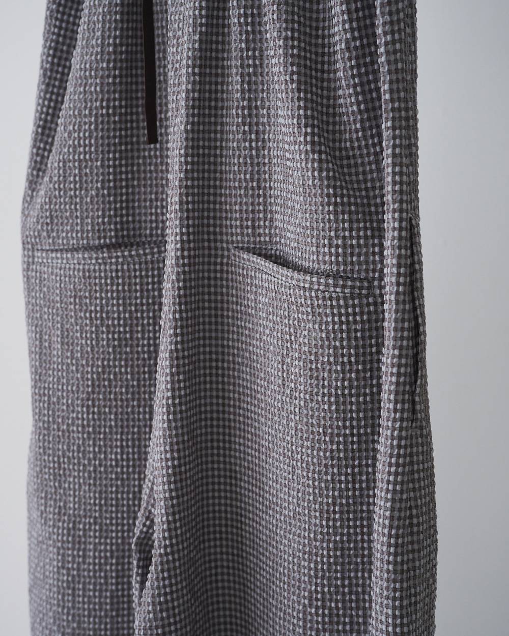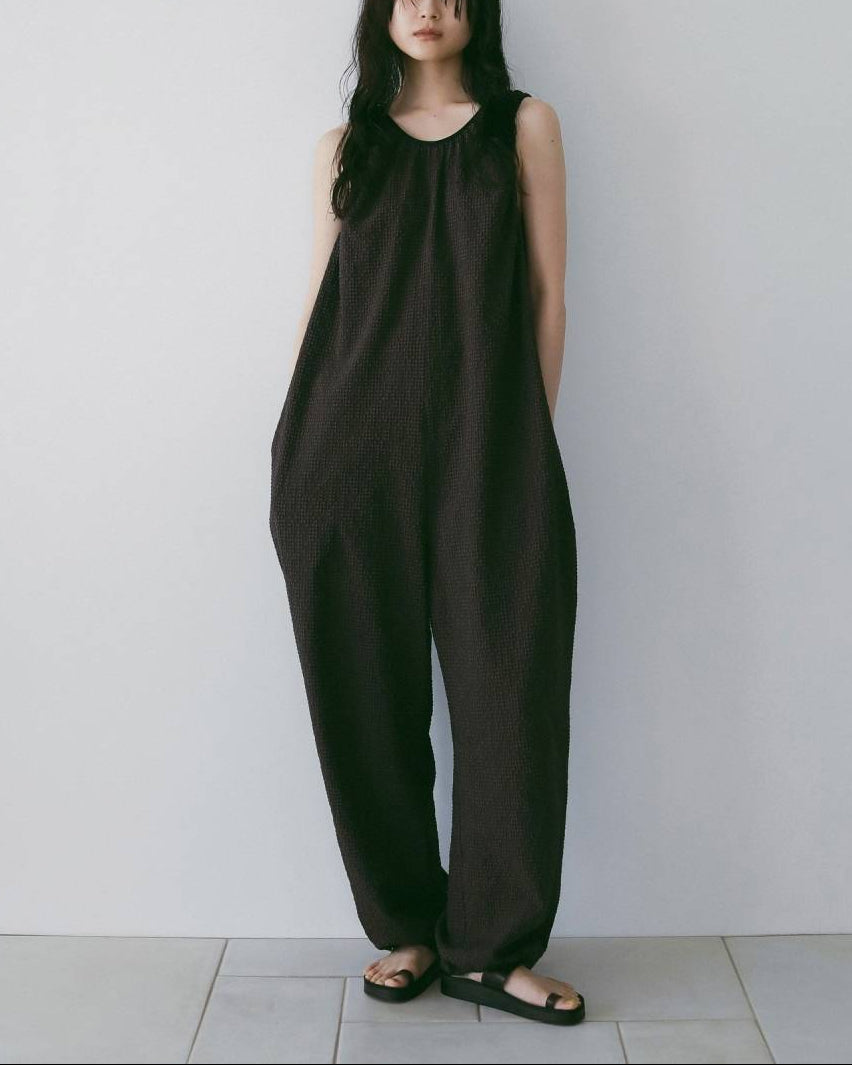 立体的なチェック柄のサッカー素材を使用したコンビネゾン。