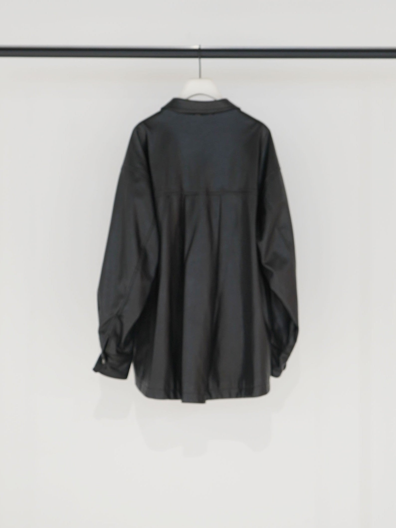 リアルレザーのような質感の合皮生地を使用したカバーオールジャケットです。