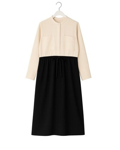 上品な衿元と袖口にパールボタンをあしらったクラシックなシャツワンピース。