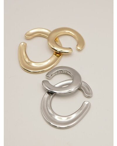 ピアスやイヤリングなどと組み合わせても◎大きい方のイヤカフは耳の下の方につけると落ちつ気が良く、小さい方のイヤカフは耳上や耳たぶにもフィットするデザインとなっております。内側には「CHIGNON」の刻印入り。