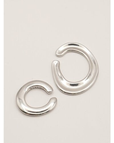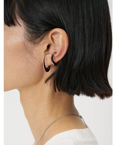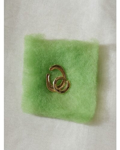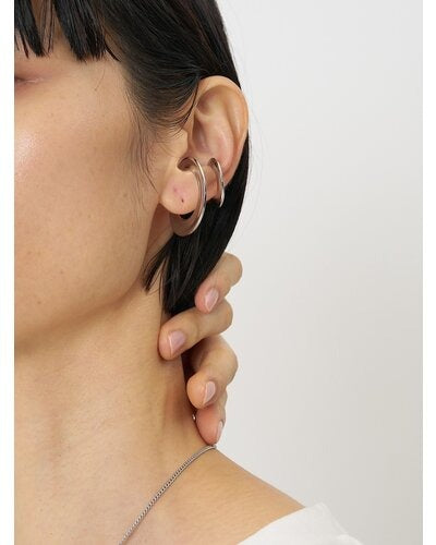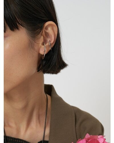 それぞれ大きさや表面のテクスチャーの違う2個セットのイヤカフは、1個でも十分存在感を発揮してくれるので単品でつけるのはもちろん、片耳に2個重ね付けしたり、お手持ちの