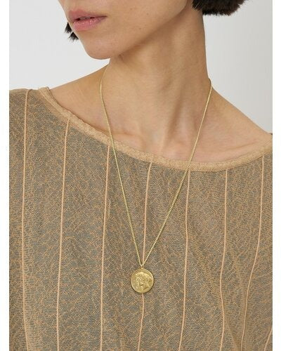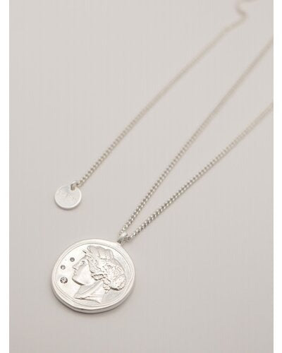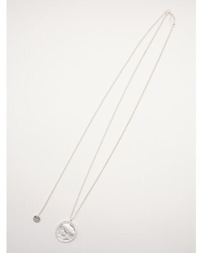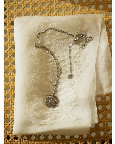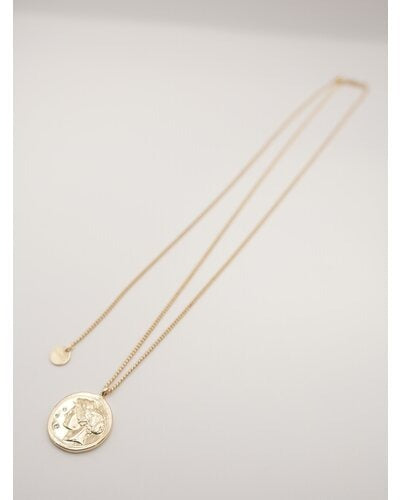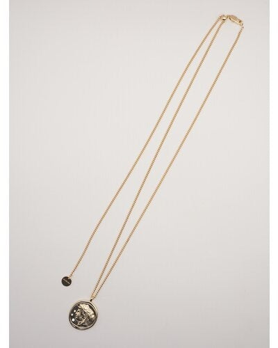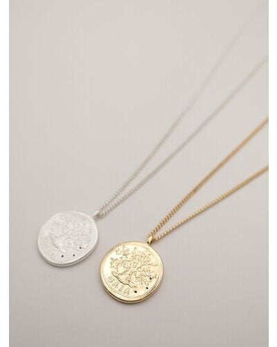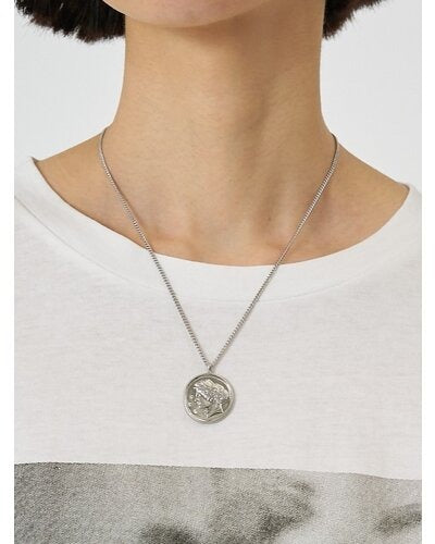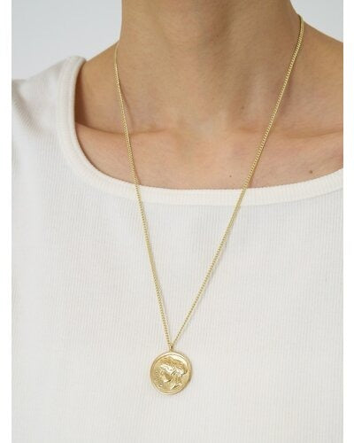 立体的に彫刻された横顔(表面)と生命力の象徴とされる木のモチーフ(裏面)のコインネックレスは、ヴィンテージライクなデザインが魅力的。肌馴染みしやすいゴールドカラーと、少しくすんだマットシルバーの2色をご用意いたしました。表面には小さな石が散りばめられているので、より高級感のある仕上がりに。また、チェーンはスライドビーズで長さ調節が可能となっておりますので、お手持ちのネックレスとの重ね付けもしやすくなっております。先端の丸プレートには「CHIGNON」の刻印入り。