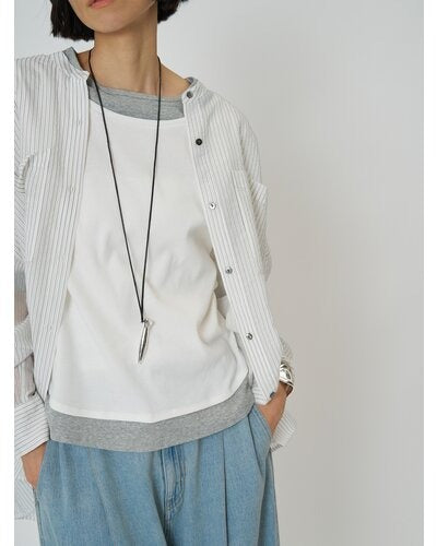 デニムやボリュームボトムとさらっと合わせるだけでもこなれた雰囲気に。全体をIラインシルエットにまとめてオーバーサイズのシャツやJKを羽織る等、インナーとしても活躍。着こなしの幅の広い1枚です。