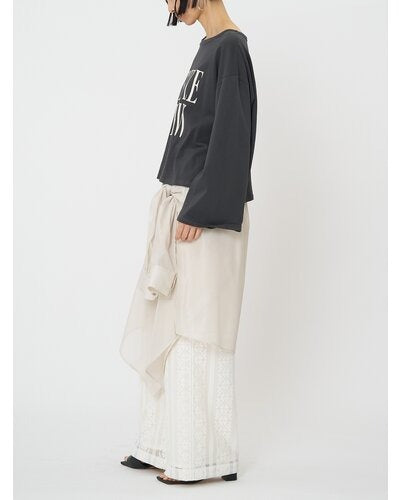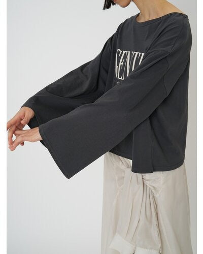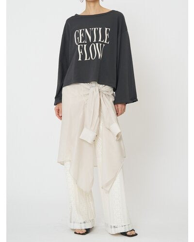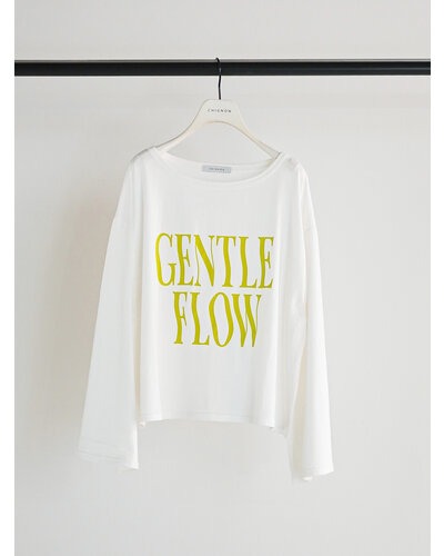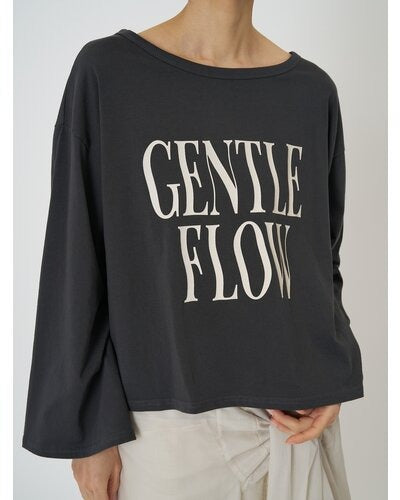 ロングシーズン活躍するプリントロンTee。GENTLE FLOW=”優しい流れ”の文字通り優しくゆれているロゴがキャッチーさを引き立たせトレンド感のあるロンTに仕上がりました。柔らかく落ち感のある素材を使用し、素肌にも心地よいです。