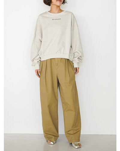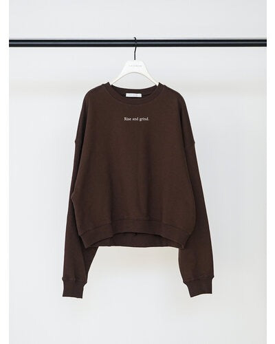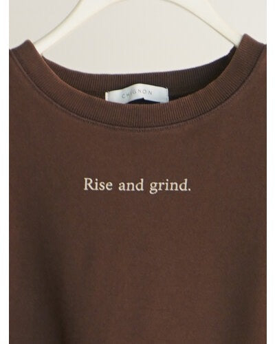 胸元には小さく”rise and grind"立ち上がり、(今日も)頑張ろう”プリントを施し、ミニマルながらも上品で印象的なデザインに仕上げています。