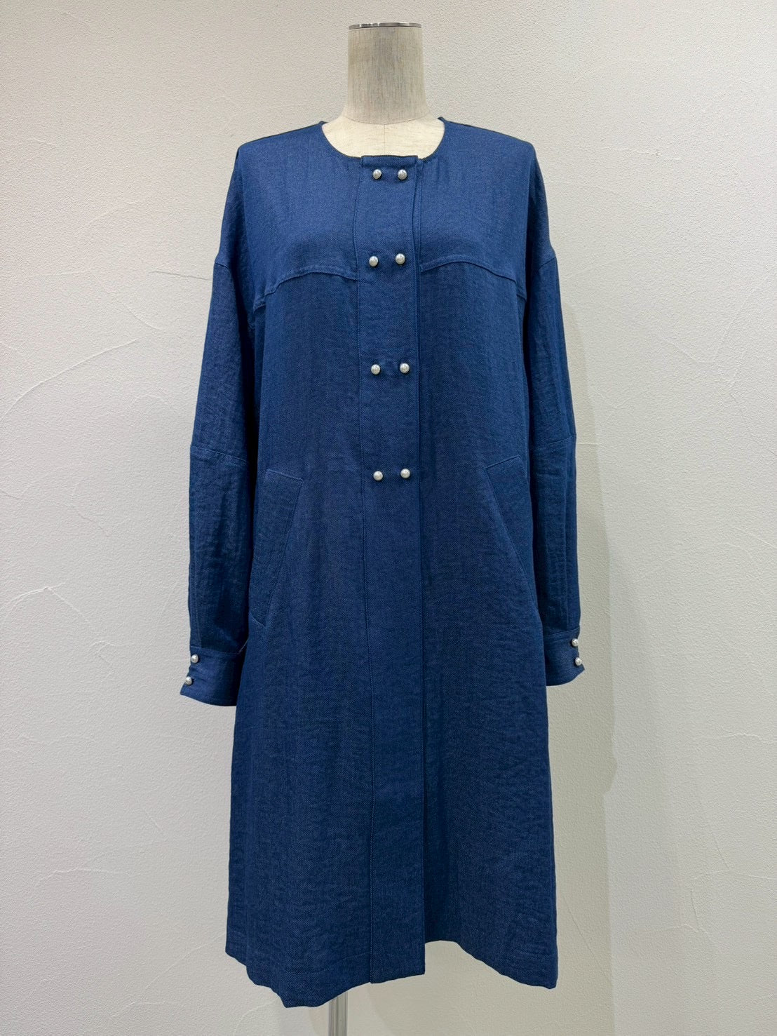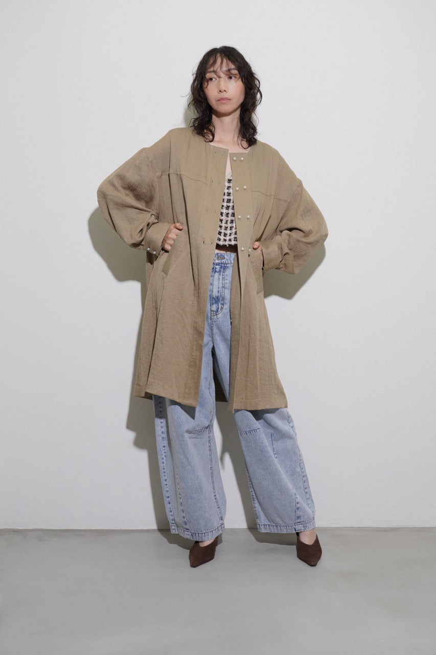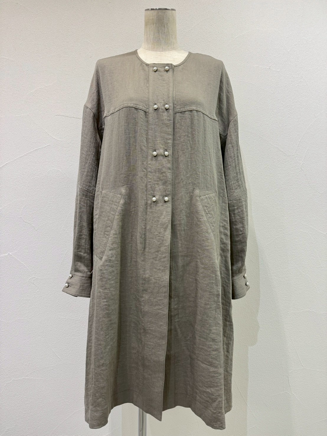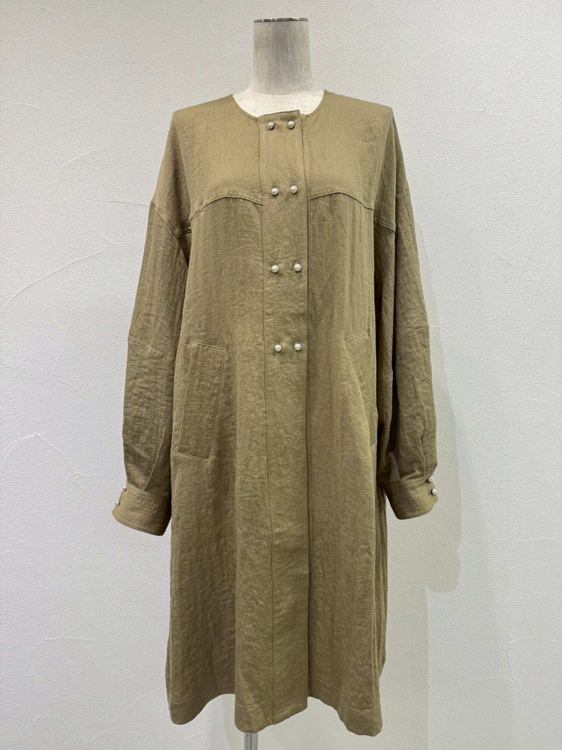パールボタンミリタリーリネンコート