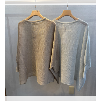 ストローヤーンラメポンチョプルオーバー