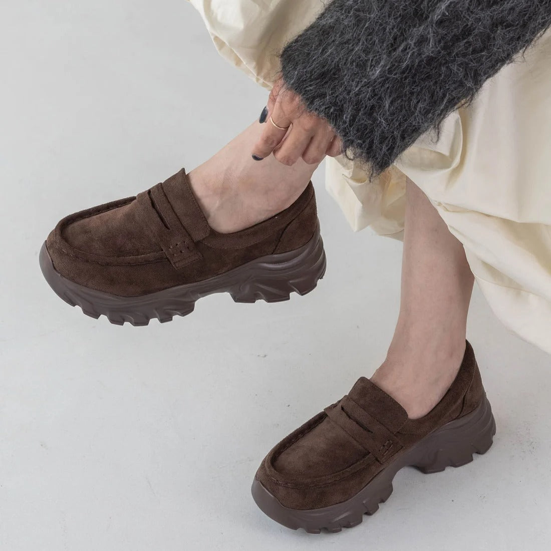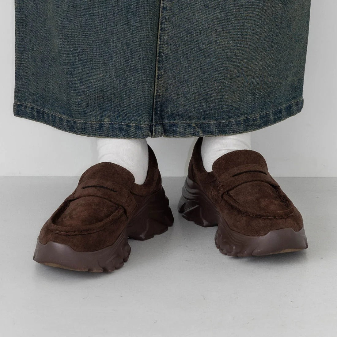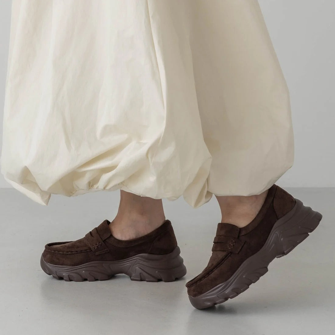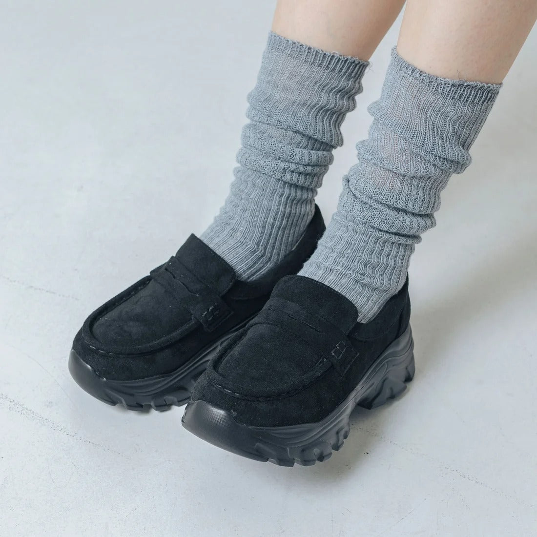 ボリューム感のあるソールと掛け合わせた厚底ローファー。旬のボリュームソールは履くだけでスタイルアップが叶います!もっちりしたしっかりと厚みのある中敷きは、足に優しくストレスフリーな履き心地。超軽量で傾斜がほとんどない厚底ソールは、デイリー使いはもちろん、たくさん歩く日やお出かけにもおすすめ◎どんなコーディネートにもハマる万能アイテム!