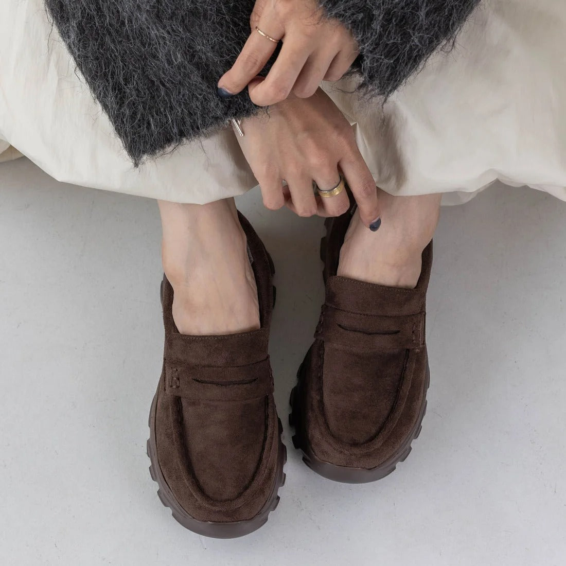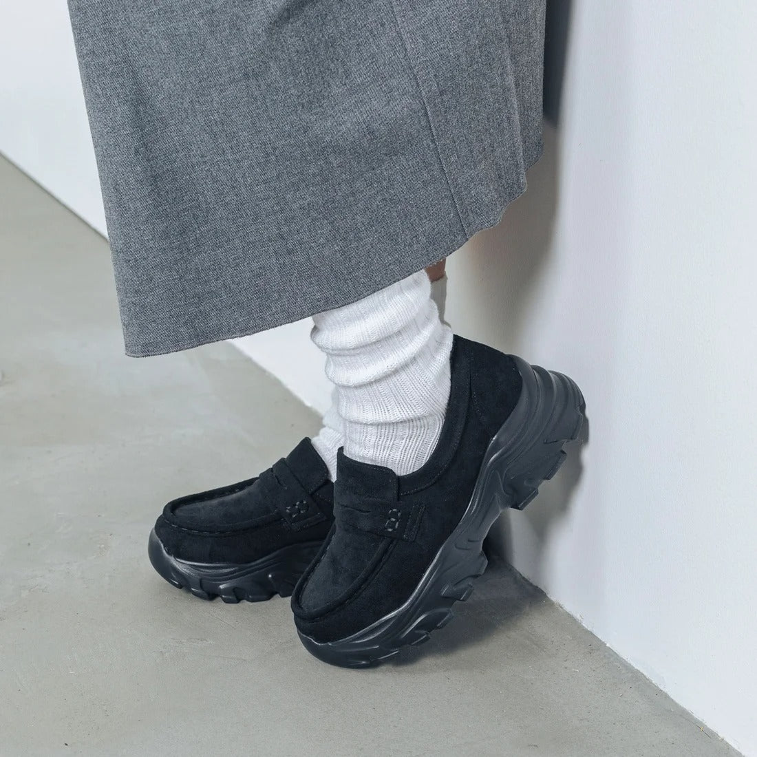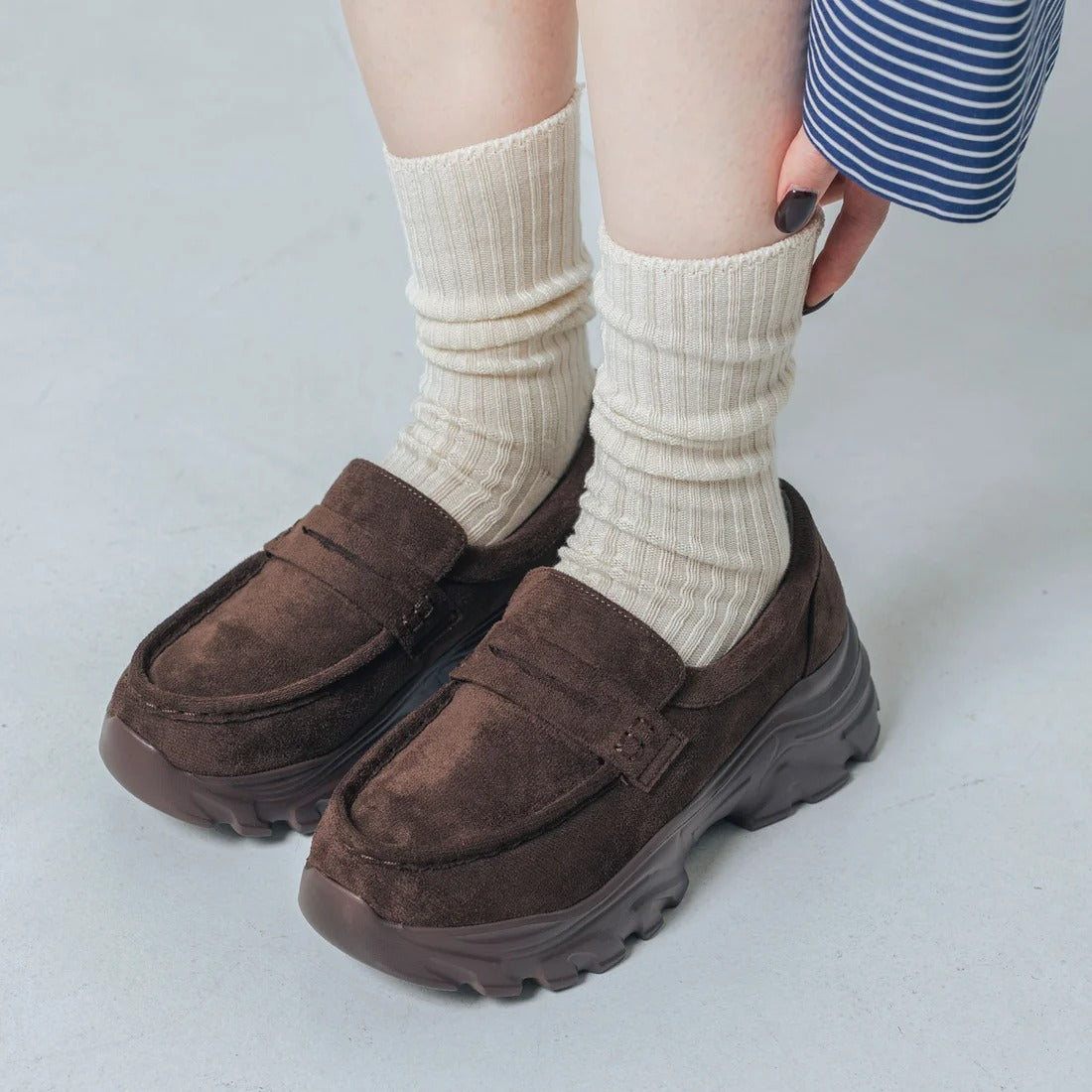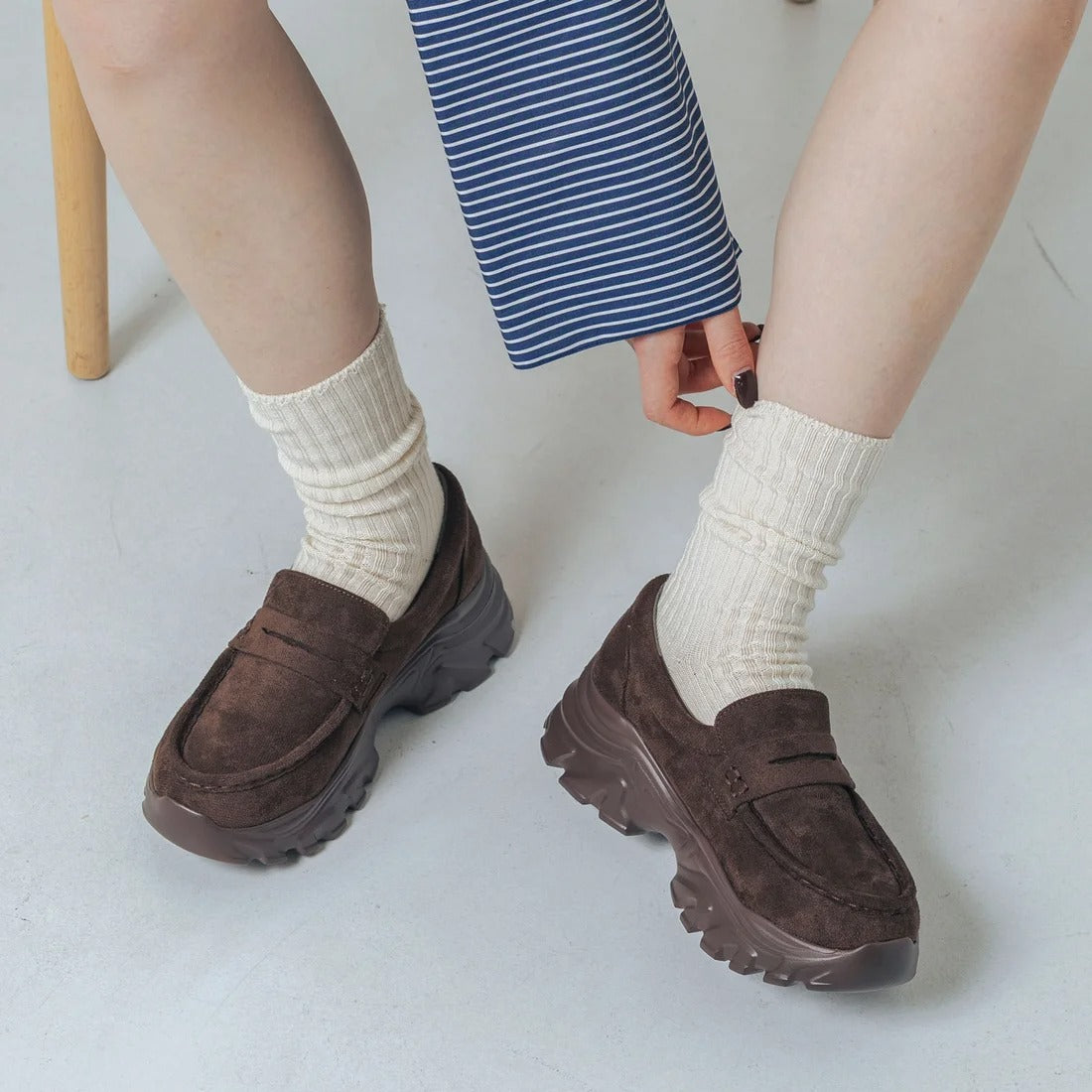ボリューム感のあるソールと掛け合わせた厚底ローファー。旬のボリュームソールは履くだけでスタイルアップが叶います!もっちりしたしっかりと厚みのある中敷きは、足に優しくストレスフリーな履き心地。超軽量で傾斜がほとんどない厚底ソールは、デイリー使いはもちろん、たくさん歩く日やお出かけにもおすすめ◎どんなコーディネートにもハマる万能アイテム!