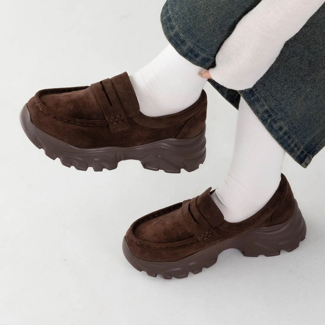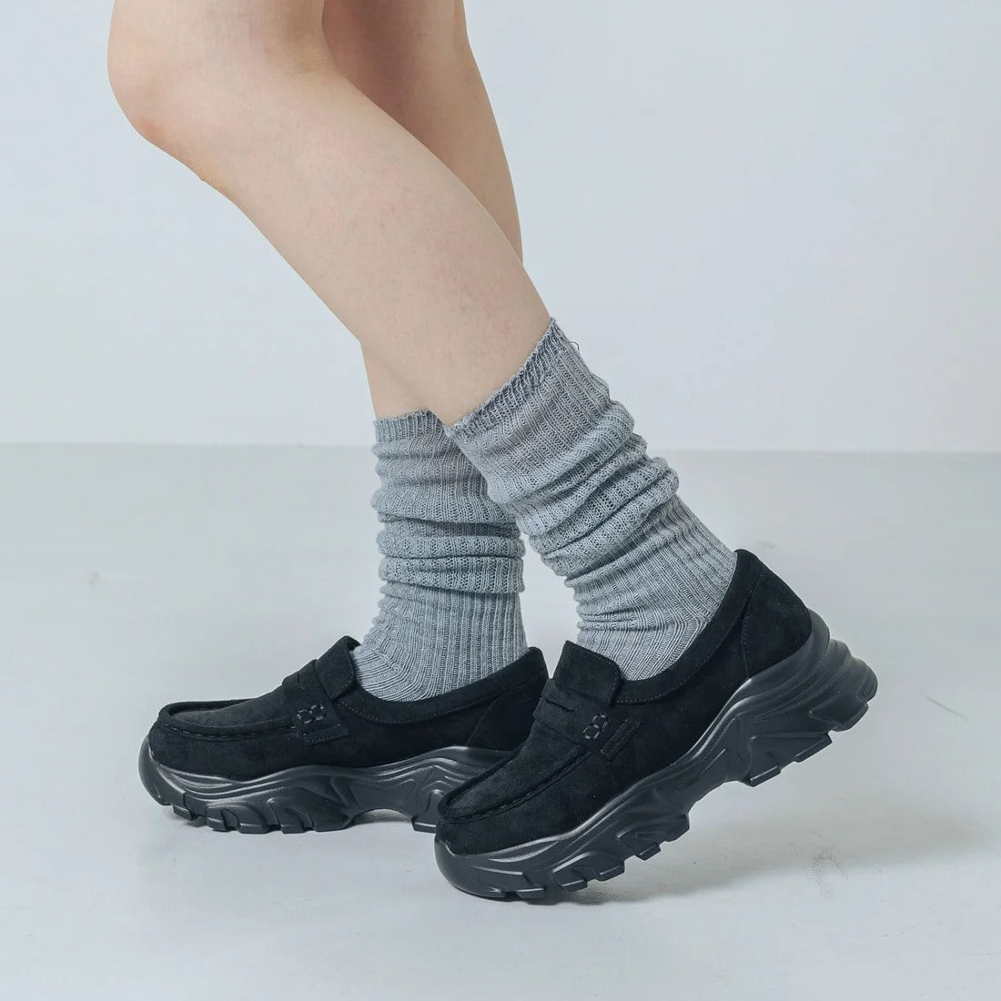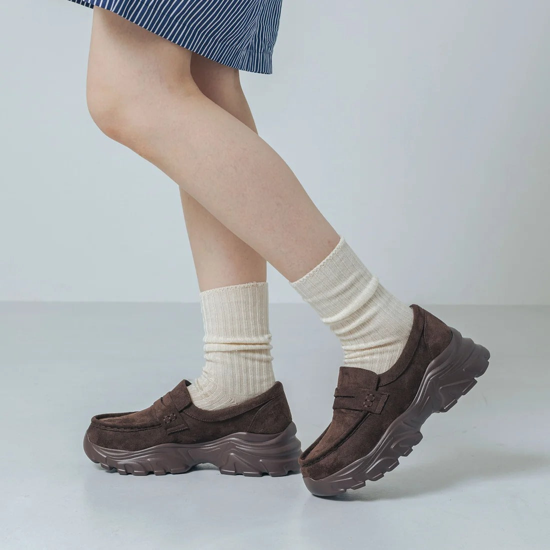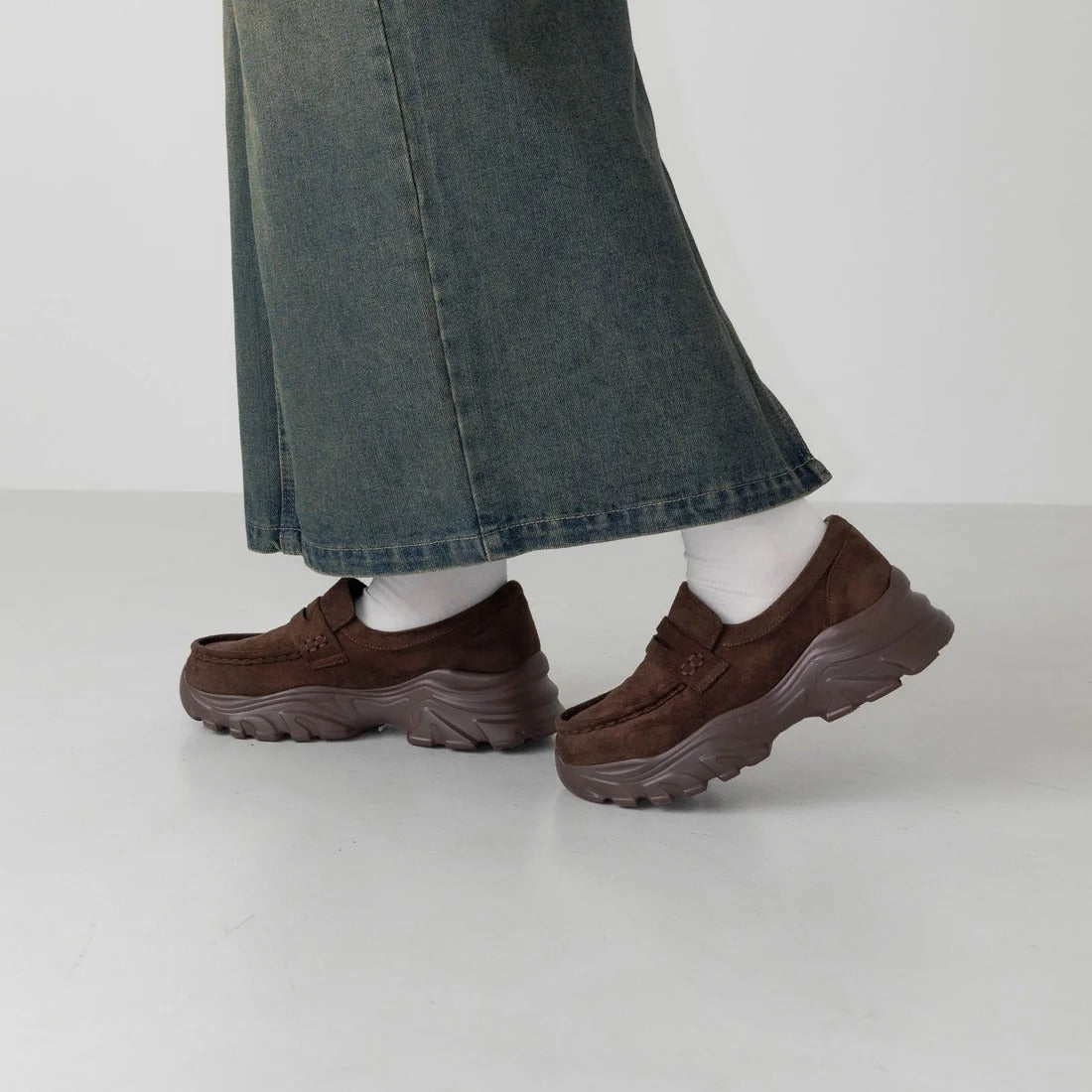 ボリューム感のあるソールと掛け合わせた厚底ローファー。旬のボリュームソールは履くだけでスタイルアップが叶います!もっちりしたしっかりと厚みのある中敷きは、足に優しくストレスフリーな履き心地。超軽量で傾斜がほとんどない厚底ソールは、デイリー使いはもちろん、たくさん歩く日やお出かけにもおすすめ◎どんなコーディネートにもハマる万能アイテム!