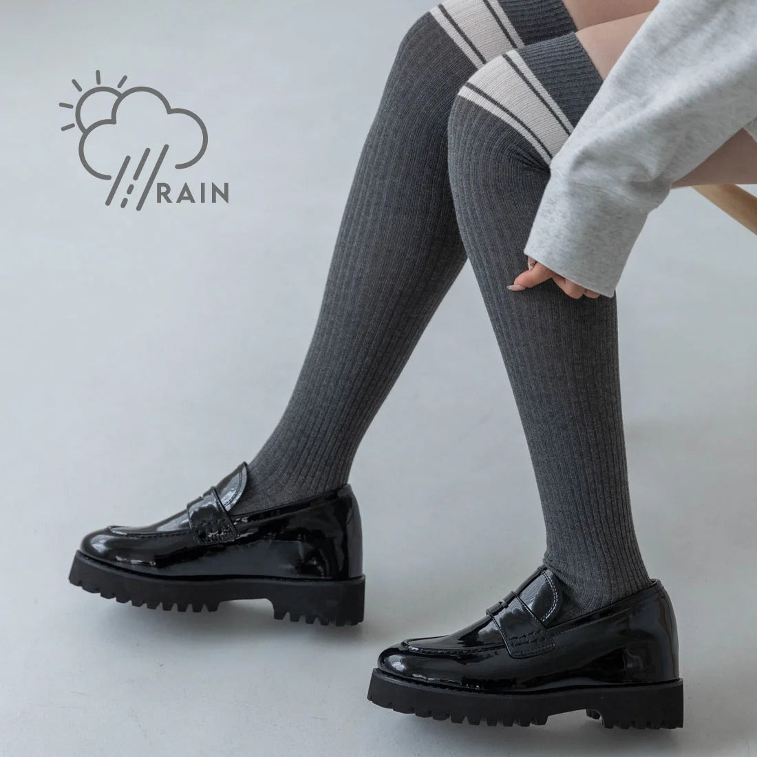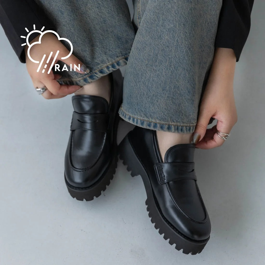 雨の日も晴れの日も履ける晴雨兼用アイテム。大ヒットしたインヒールローファーがブラッシュアップして再登場!晴雨兼用でお使いいただける定番のローファーに2cmのインヒールを入れて、自然なボリューム感に見えつつ履くだけでこっそりスタイルアップが叶います◎肉厚なクッション中敷きで足裏をサポートし、見た目以上に軽量な履き心地はどこまででも履いていきたくなる履き心地に。