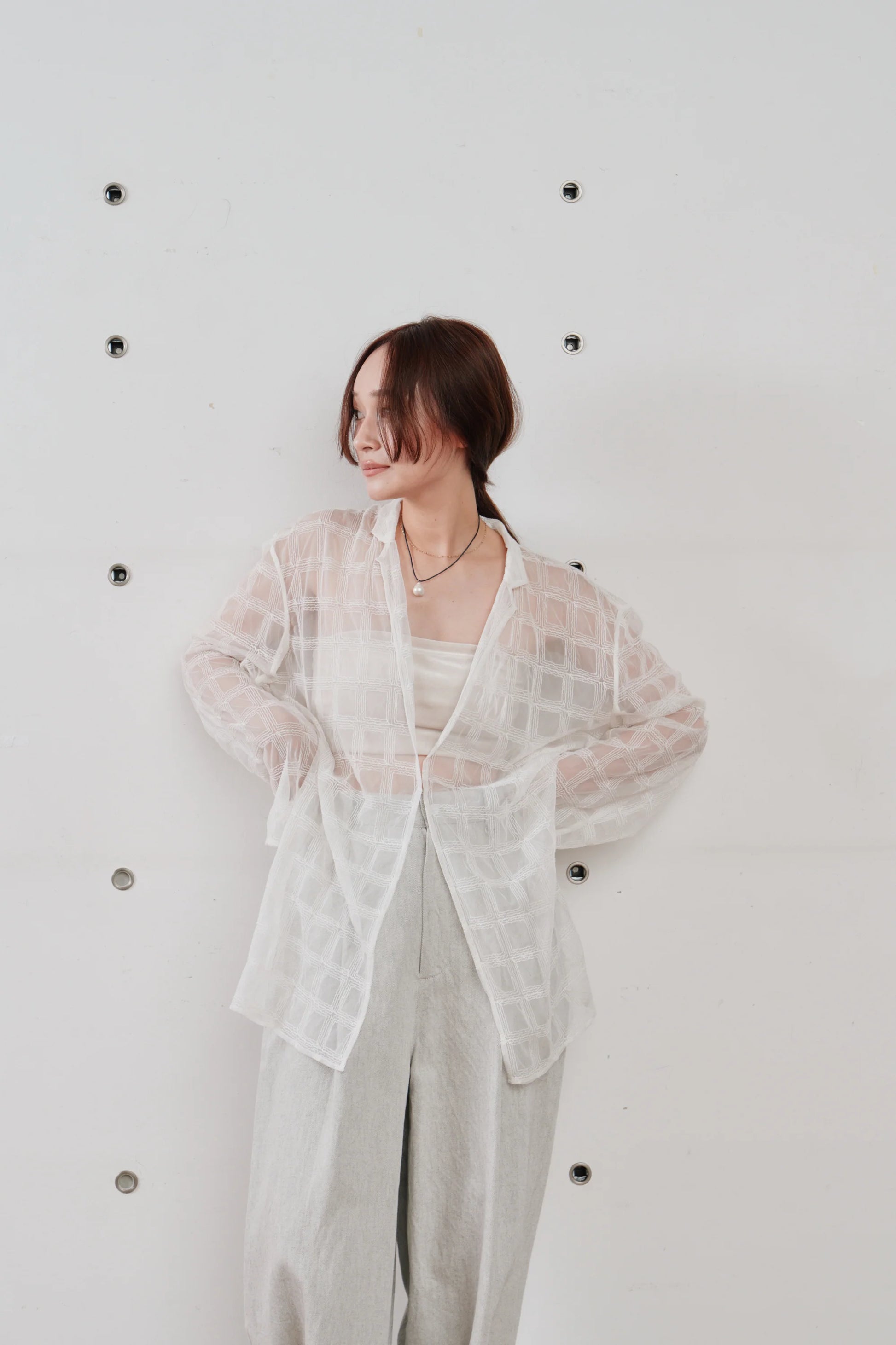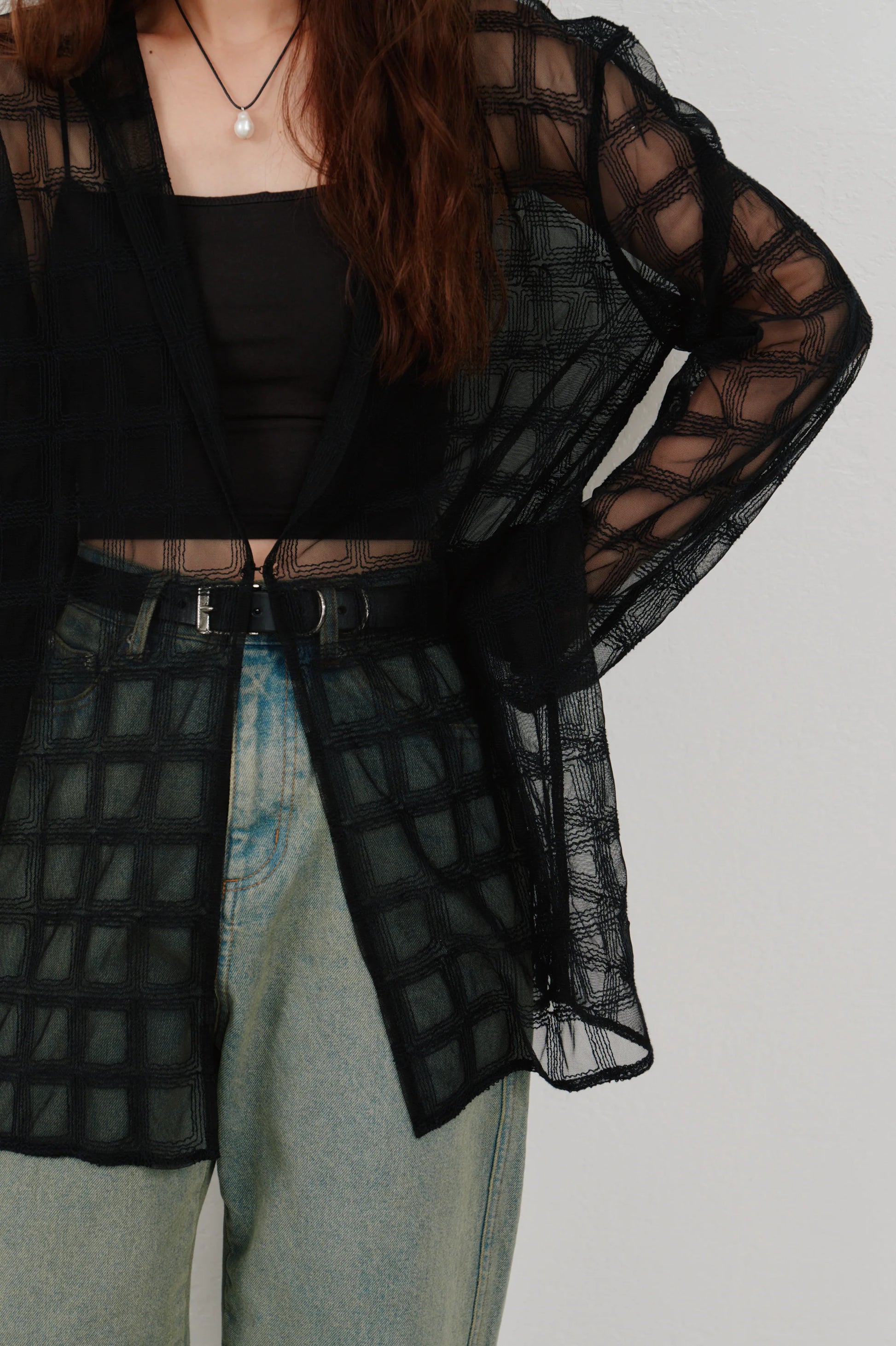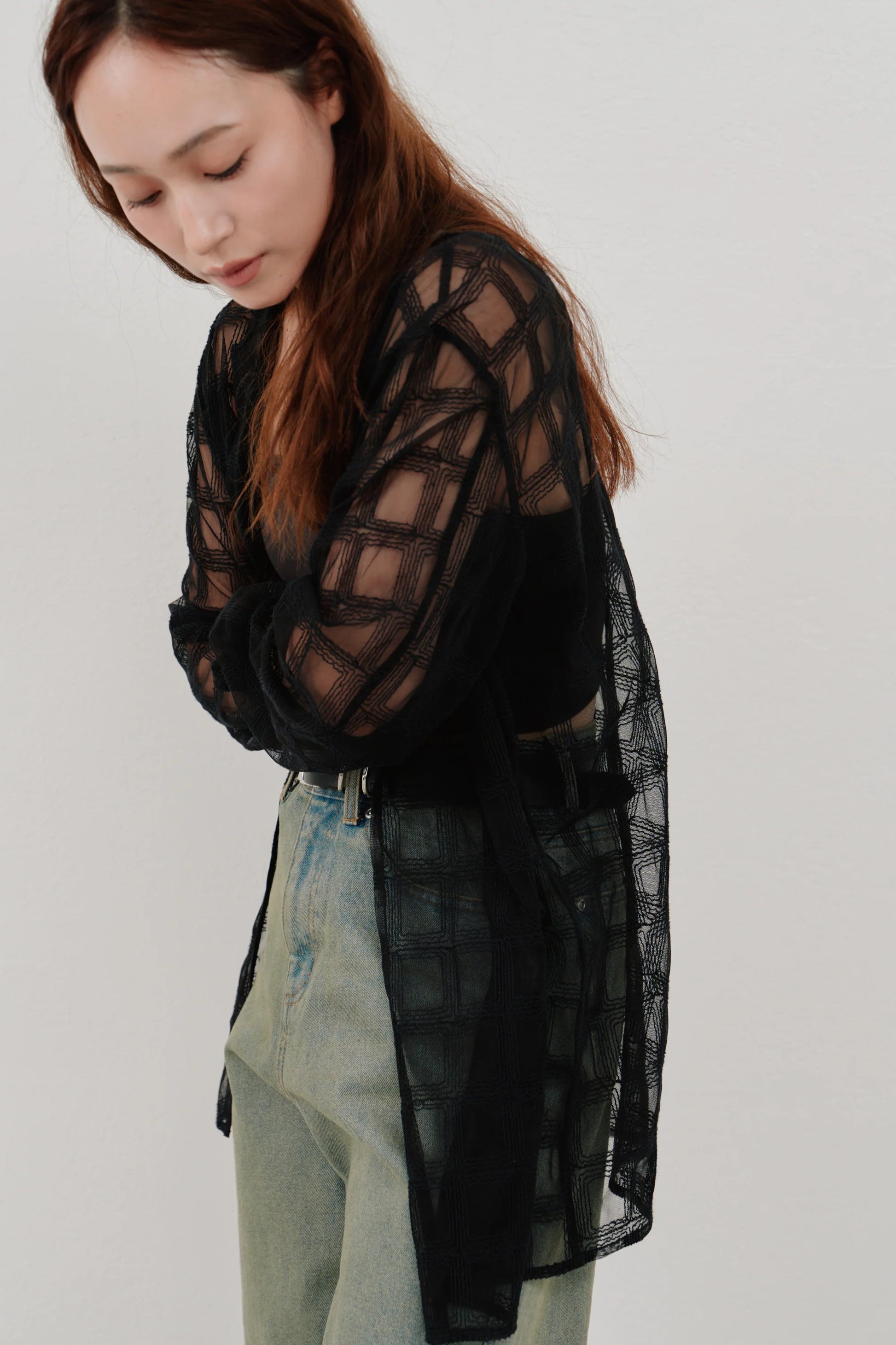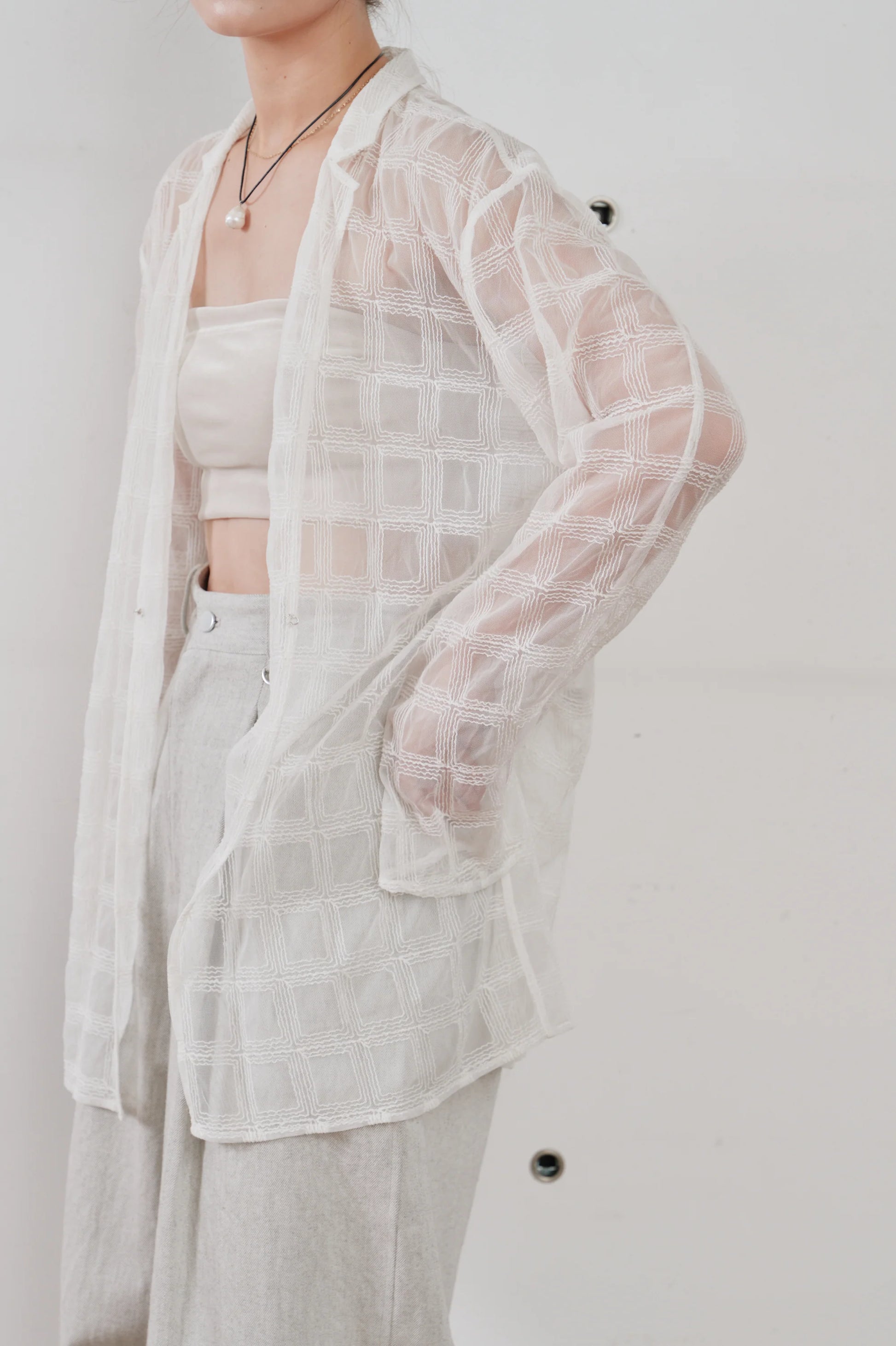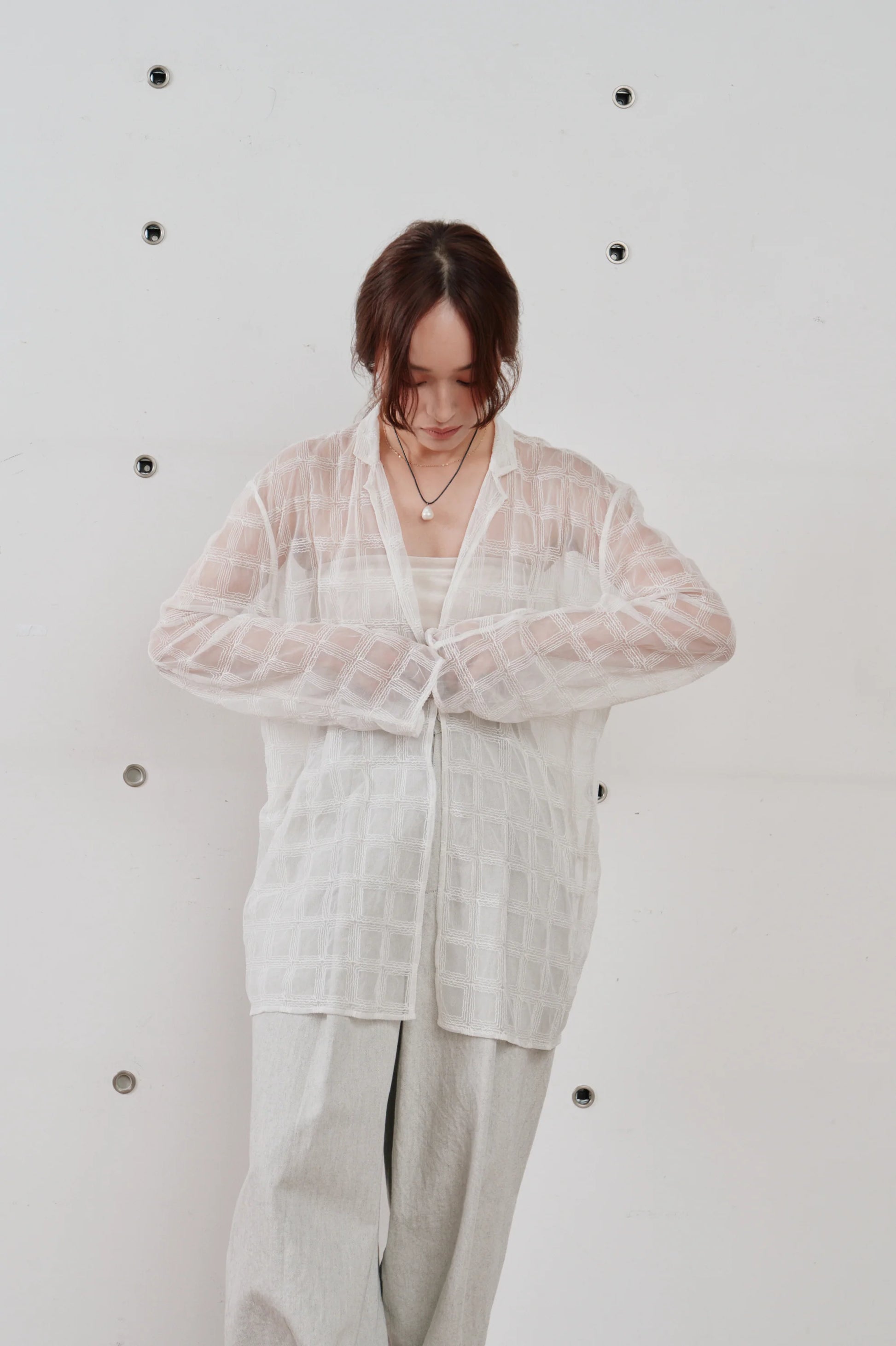 【Hella 2026 SPRING/SUMMER】embroidery check sheer jacket