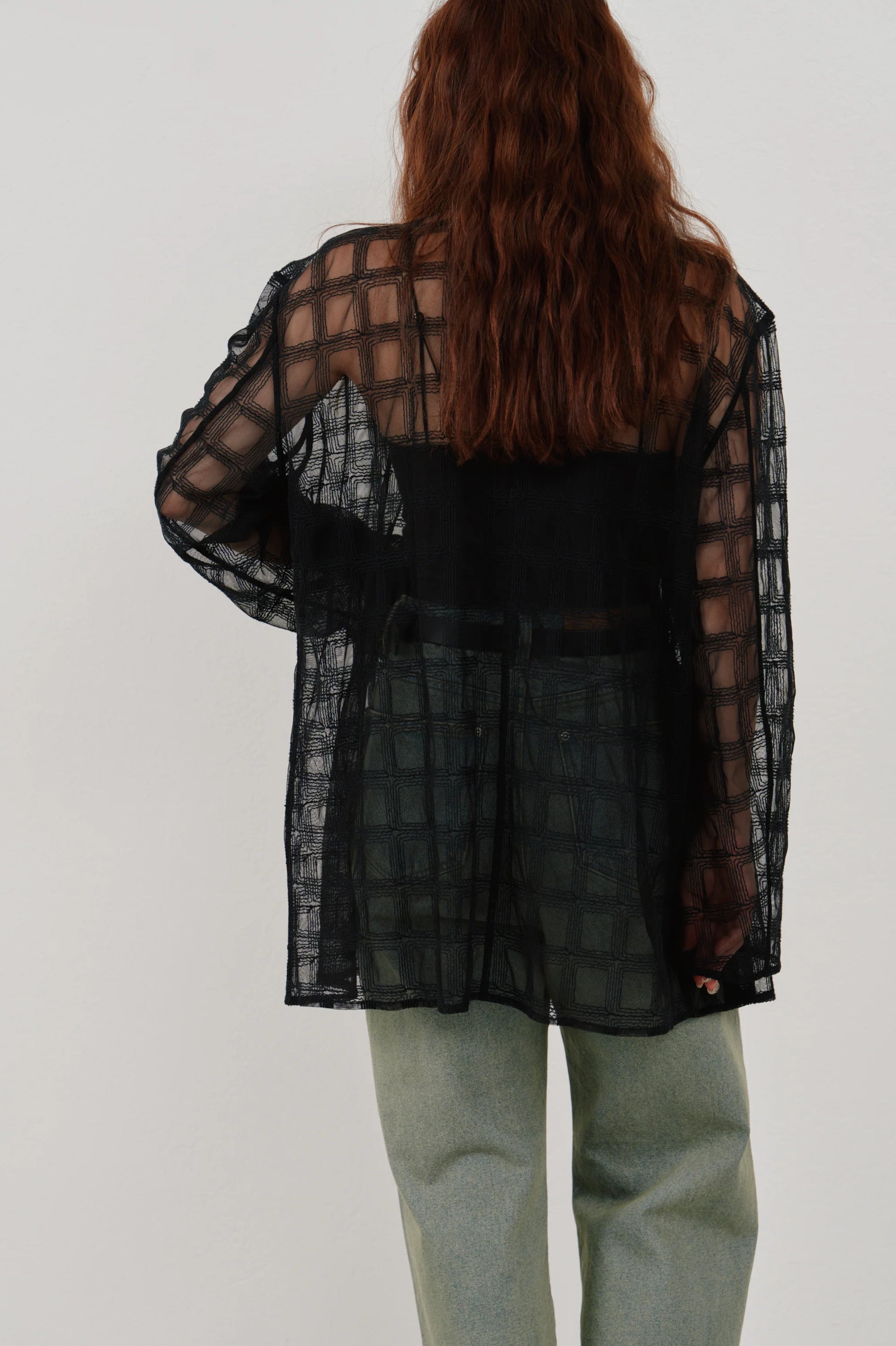 embroidery check sheer jacket