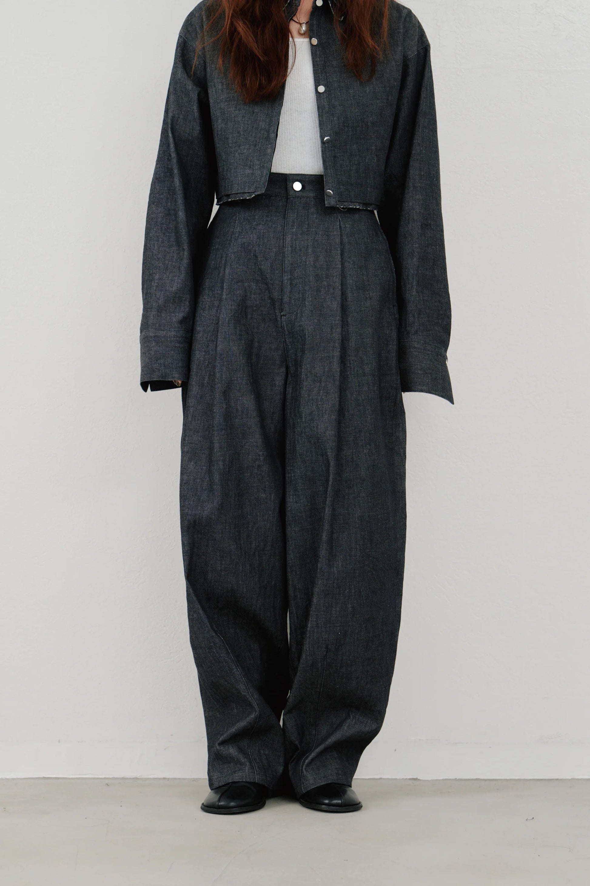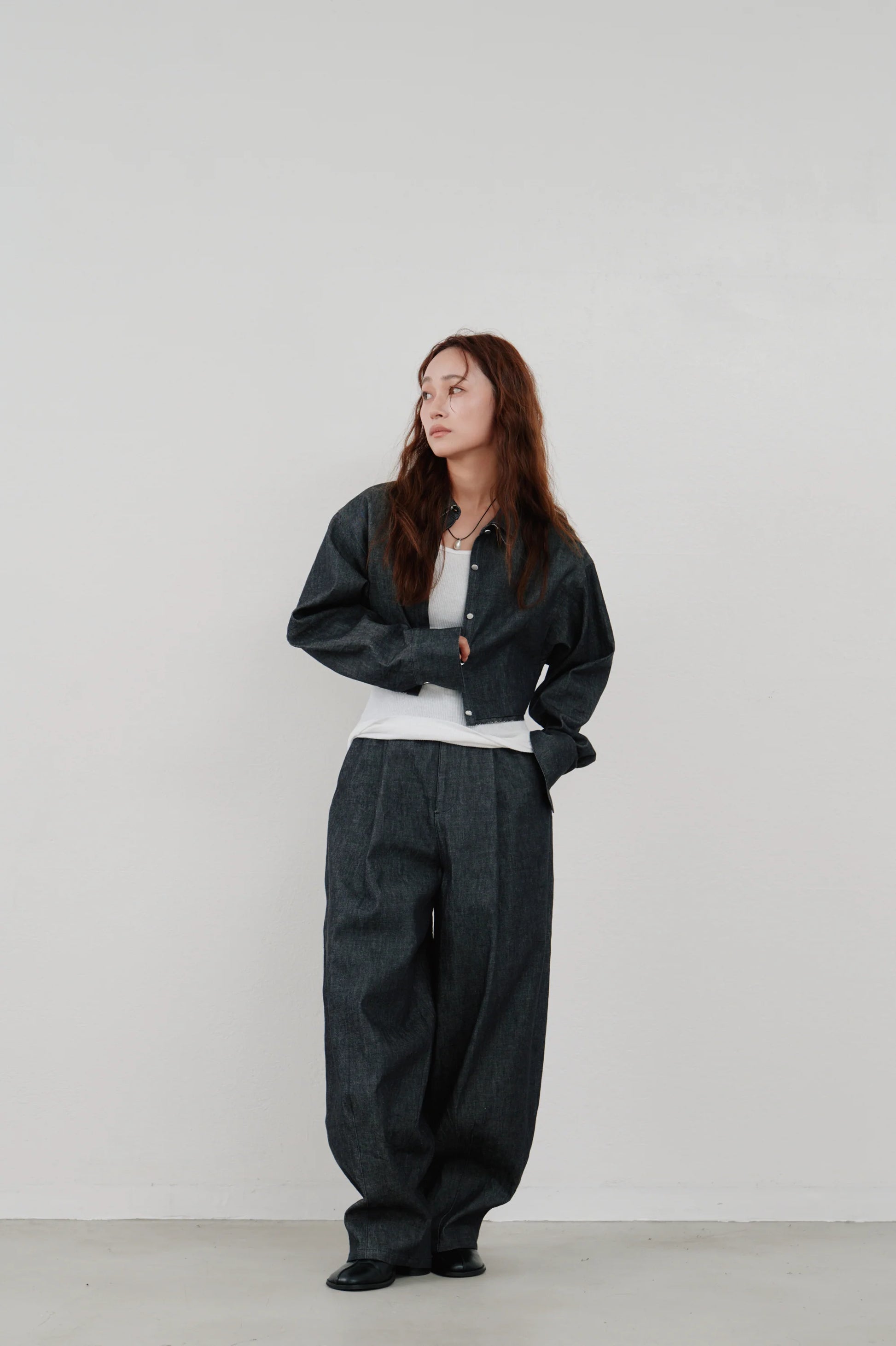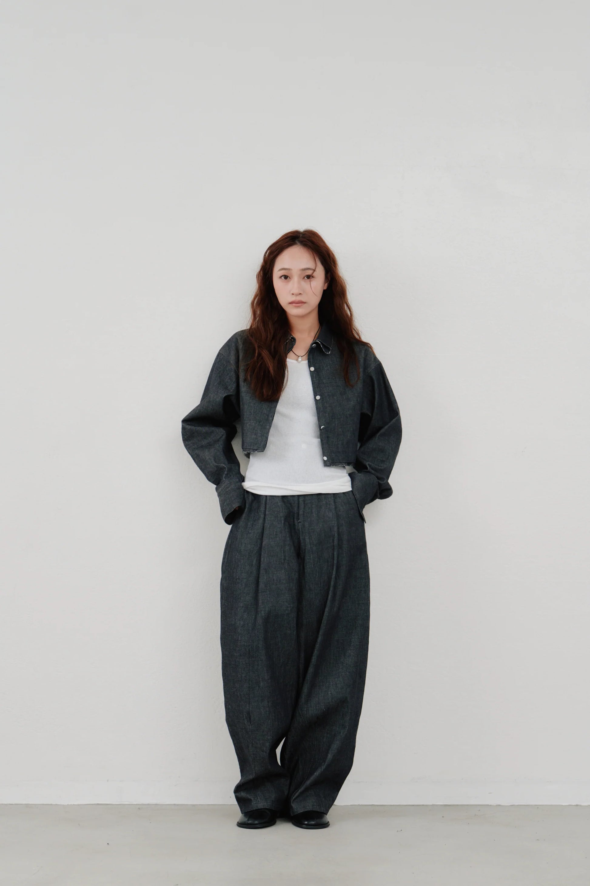同素材で作られたsnow denim blousonとのセットアップもおすすめ。