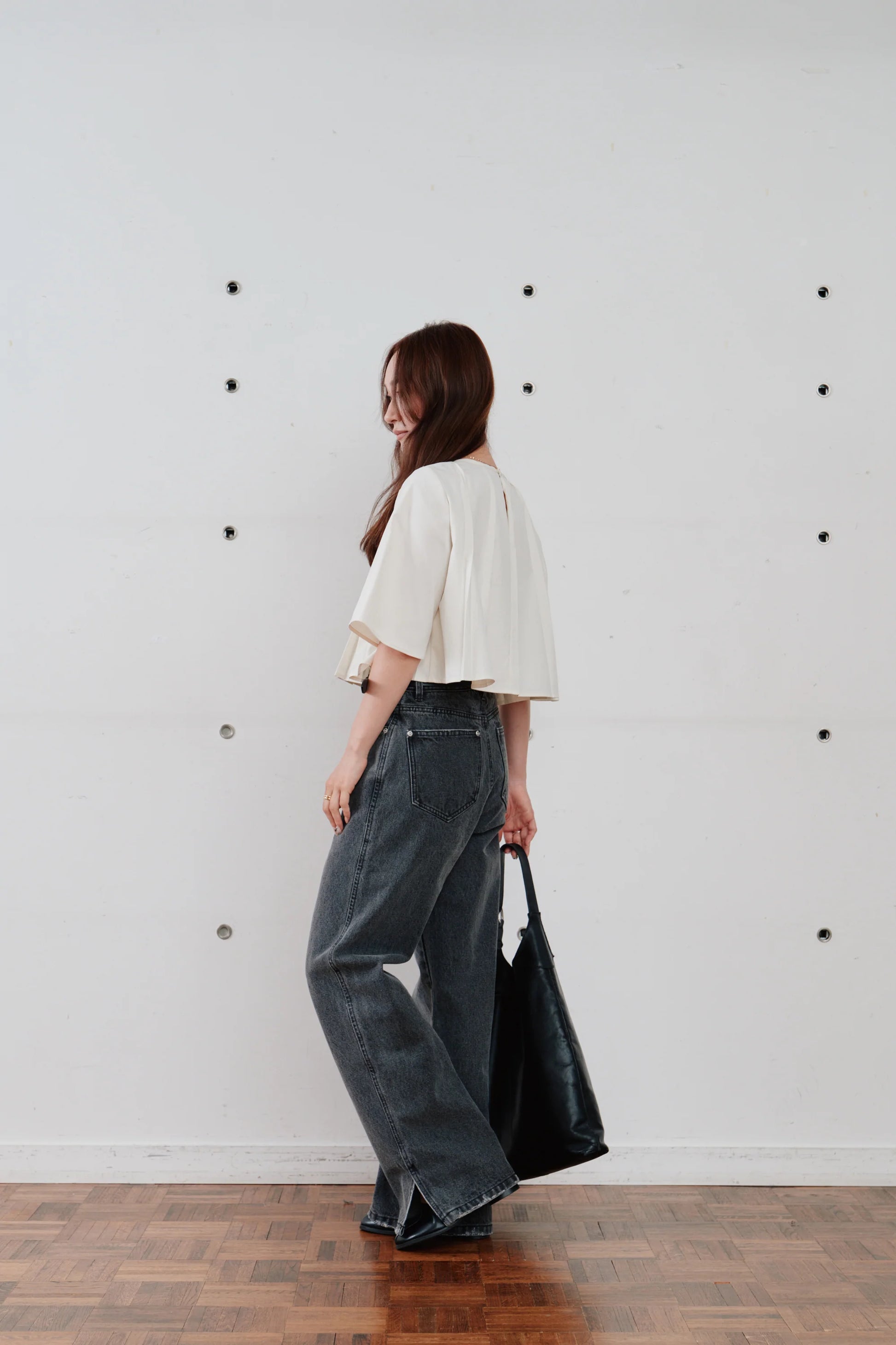 軽やかに広がるフレアシルエットが、動くたびに表情を生み出します。