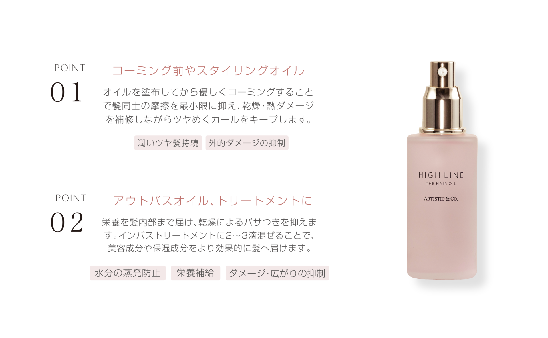 夜のヘアケアが朝のスタイリングを楽にし「ベタついて重く仕上がる」というオイルの常識を覆し、思わず触れたくなる艶やかでまとまりのある髪へと仕上げます。