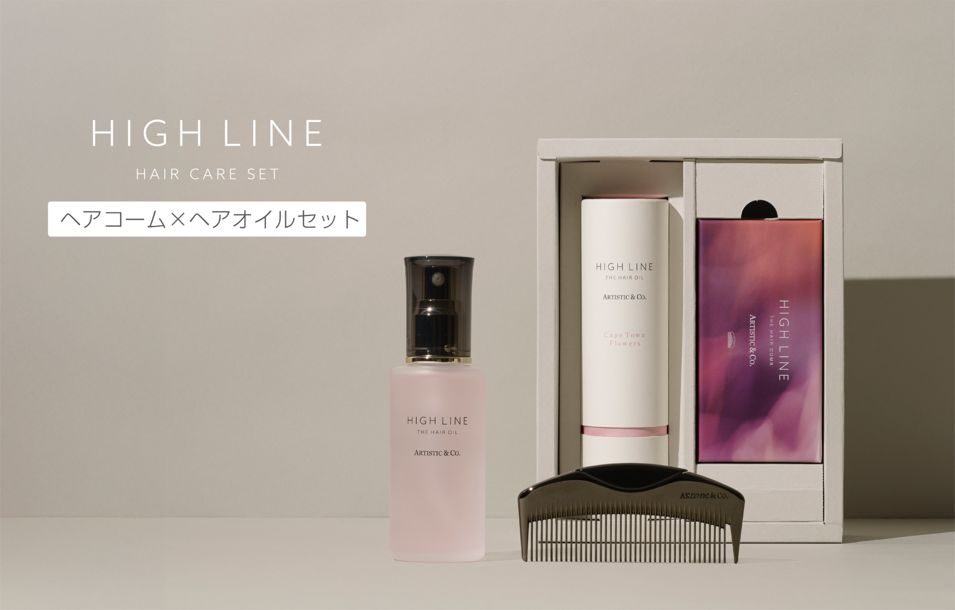 【HIGH LINE】 ザ ヘアケアセット - 半月コーム ブラック & ヘアオイル