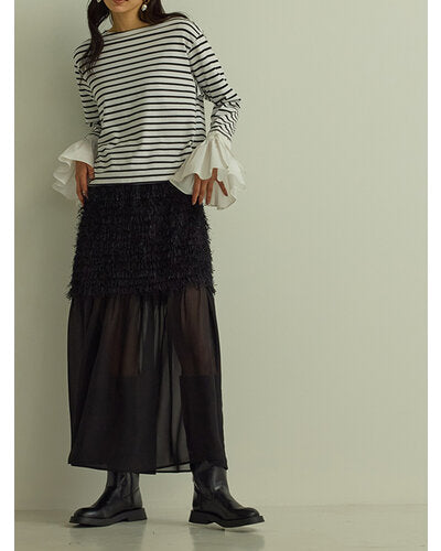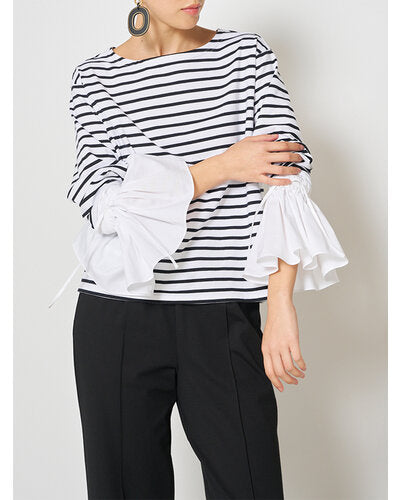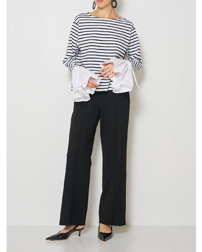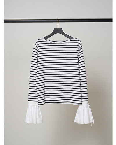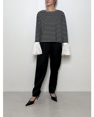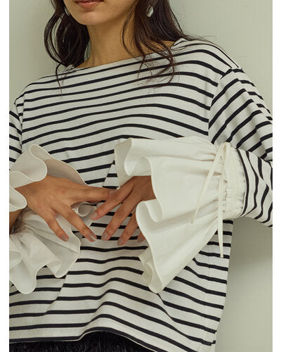 袖口は1mも長さのあるフレアを贅沢に入れて、カジュアルになりやすい春の定番ボーダーをアップデートしました。