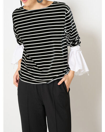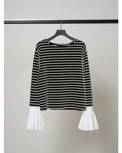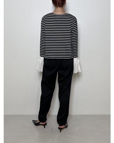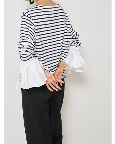 袖口をシャツ素材で切り替えたボーダーTOPS。