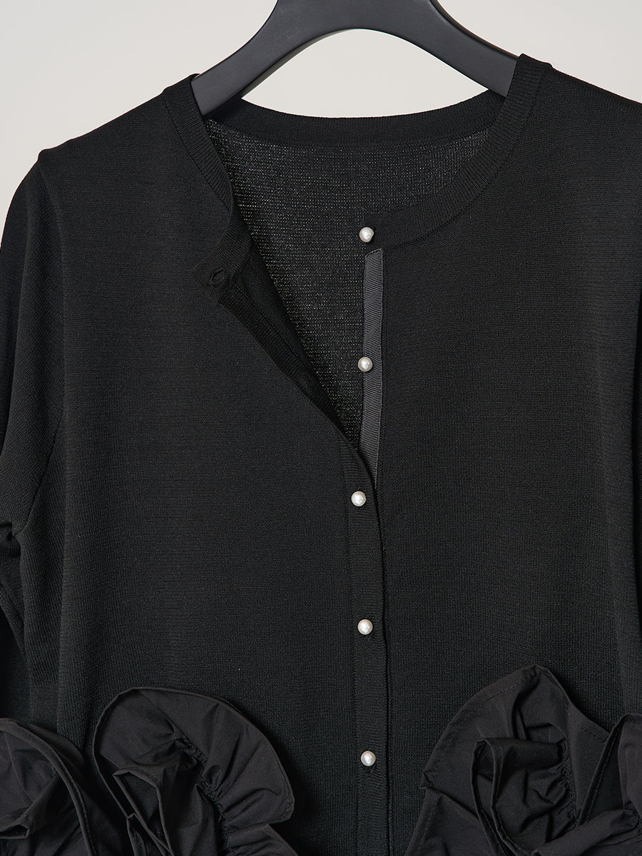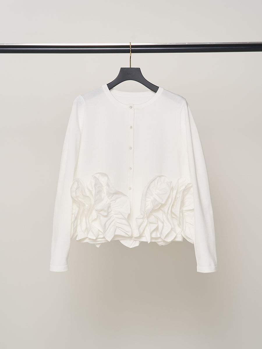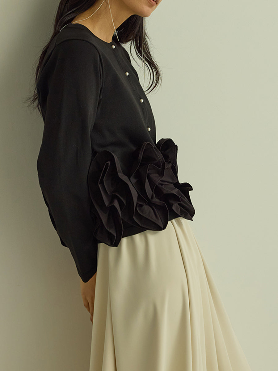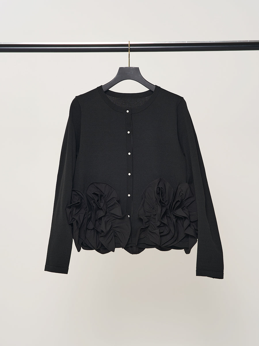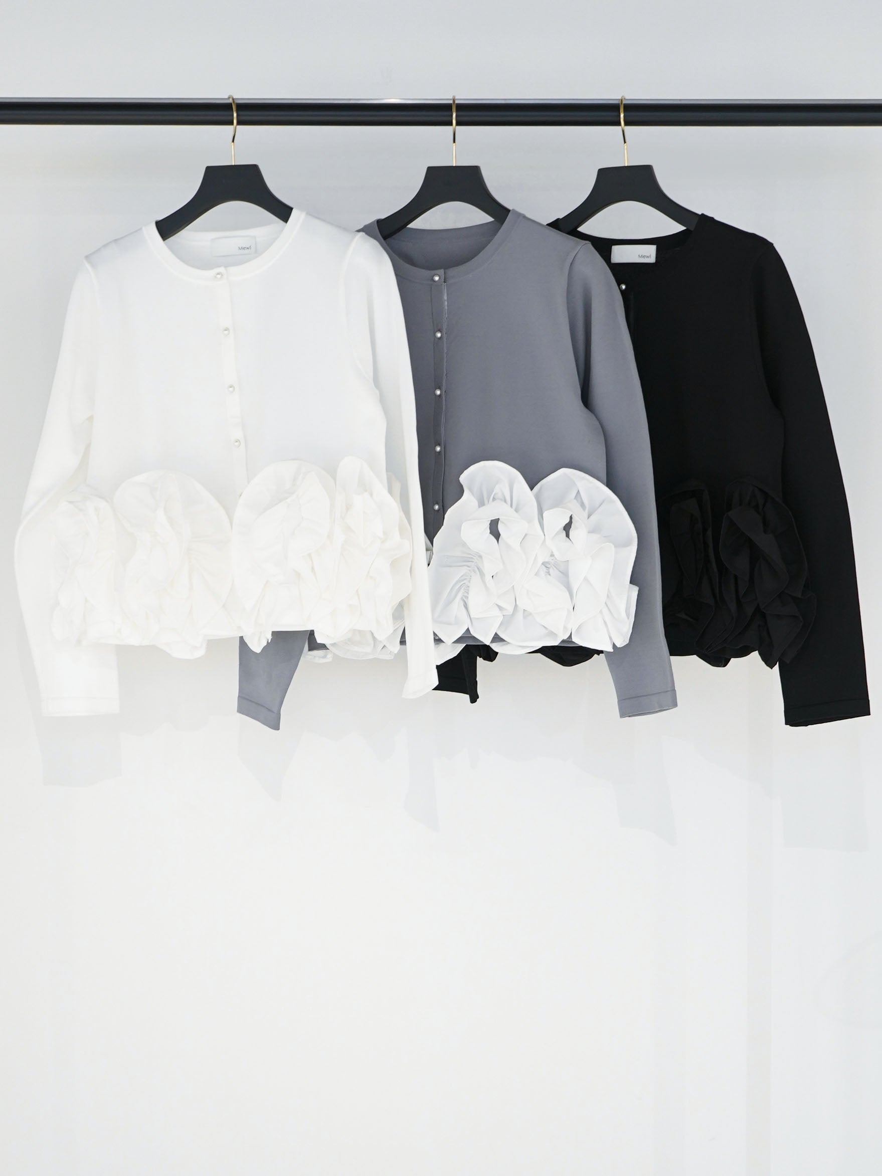 「ふわりと咲く、ドラマをまとう。お花フリルのカーディガン」
