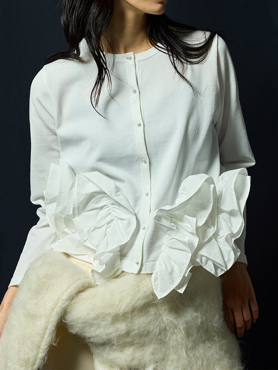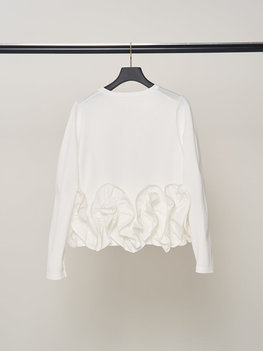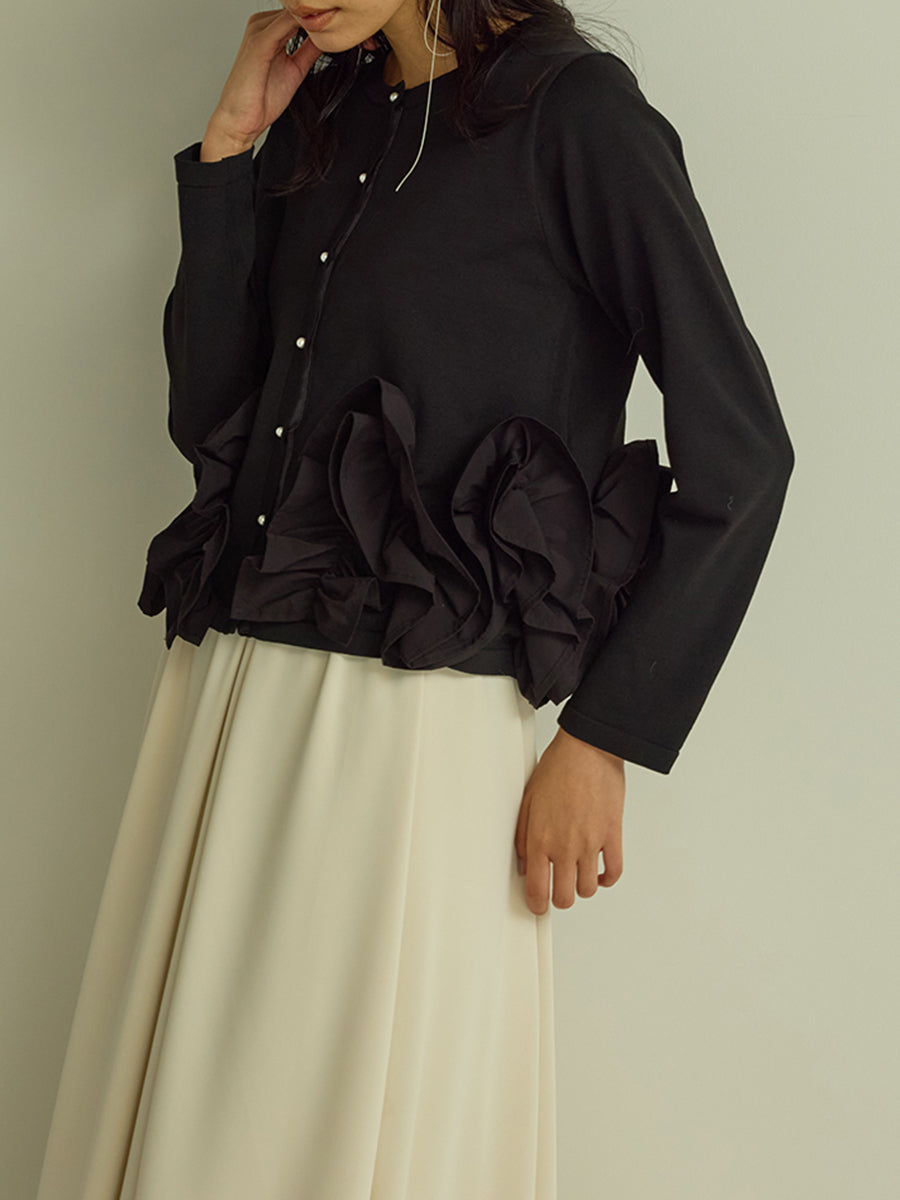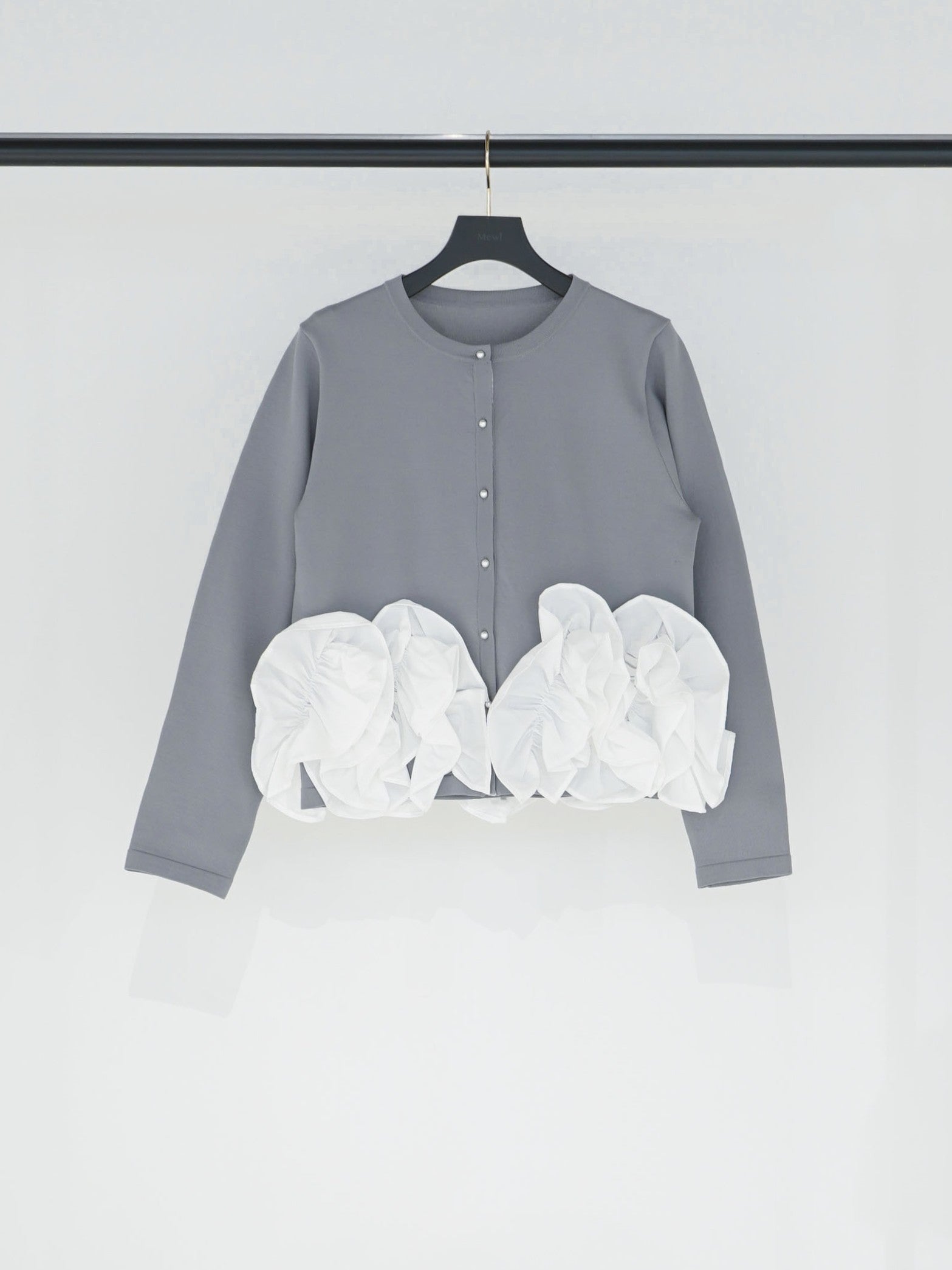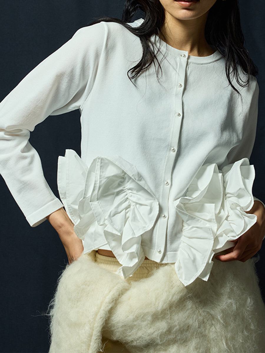 「ふわりと咲く、ドラマをまとう。お花フリルのカーディガン」