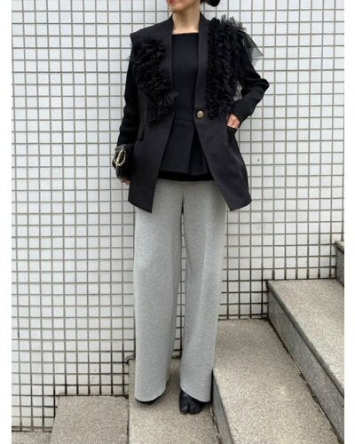 ストレートワイドのシルエットが、脚のラインを拾わずすっきり見せてくれます。