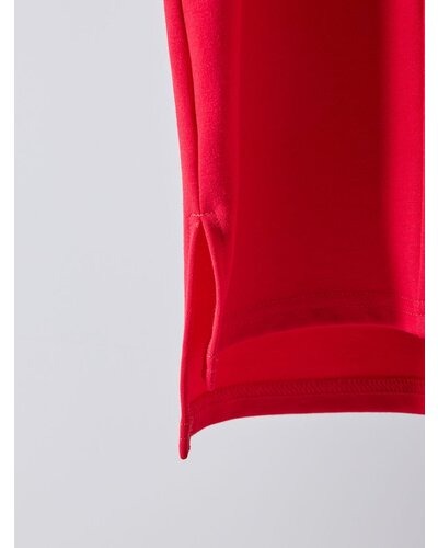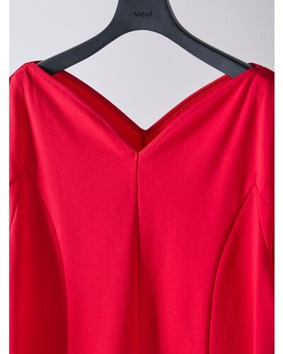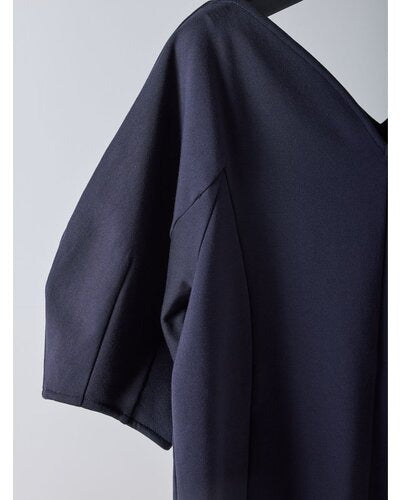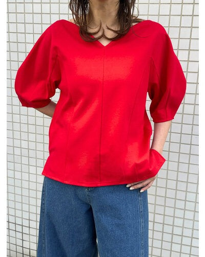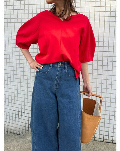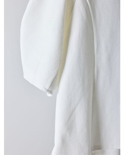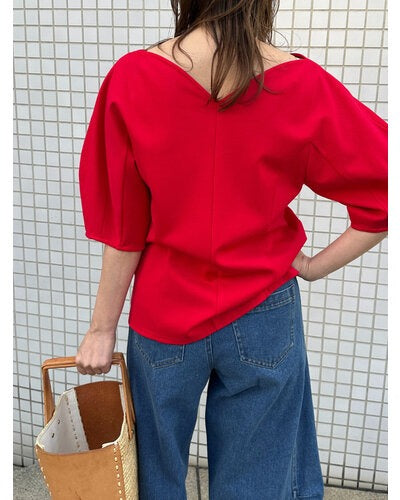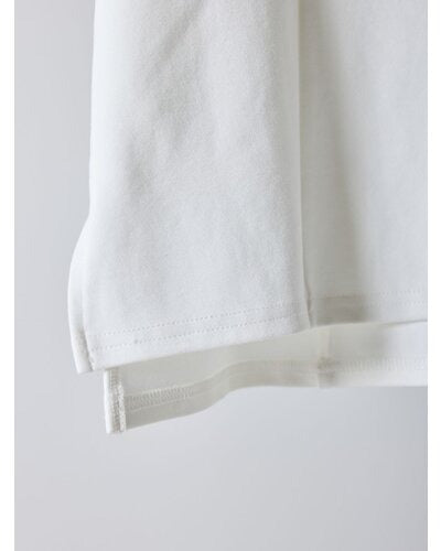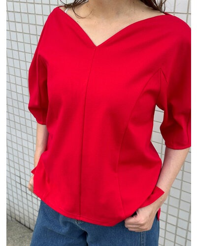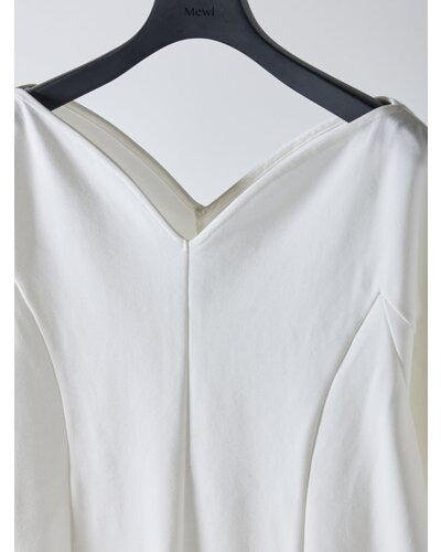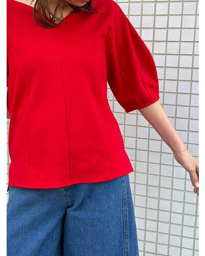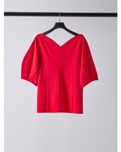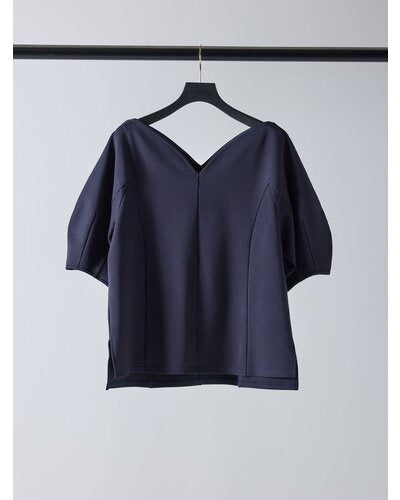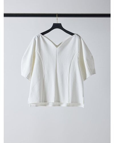まるでハートを描くようにカーブを描いたネックラインが印象的なポンチ素材のカットソー。