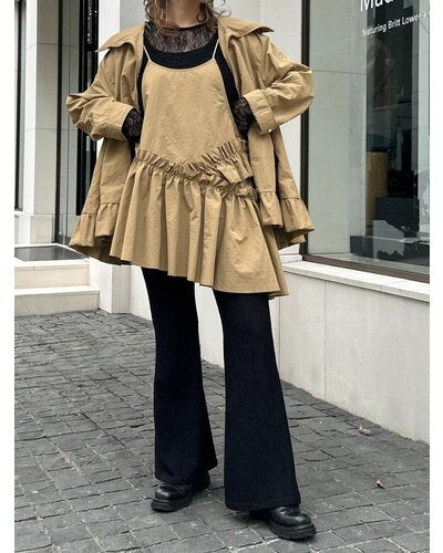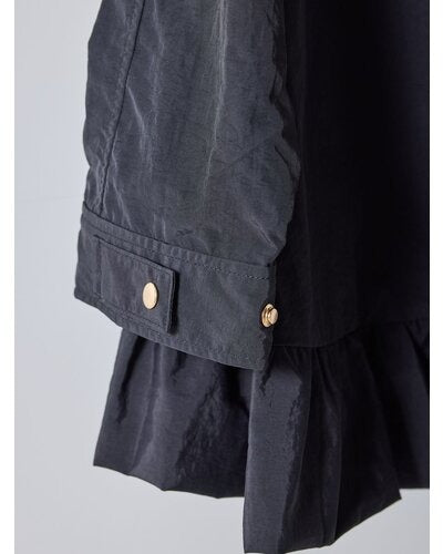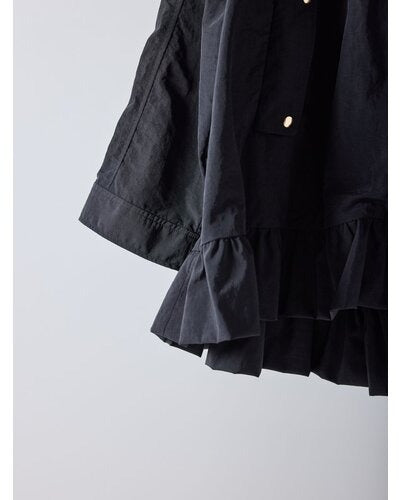 軽やかなナイロン素材を贅沢に使用し、裾にはたっぷりとフリルをあしらって大人の可愛さをプラス。