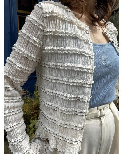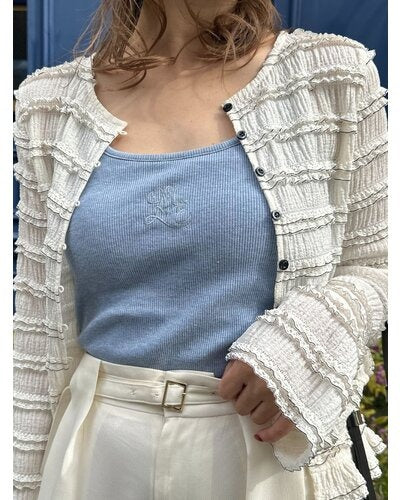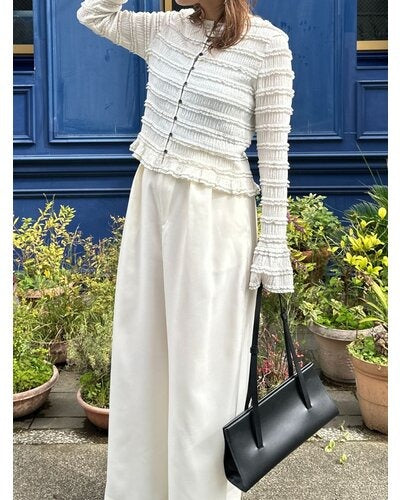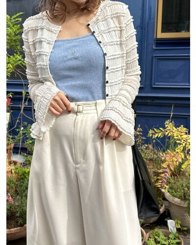 段になったミニフリルが愛らしい表情をつくる、Mewlらしい大人可愛いカーディガン。