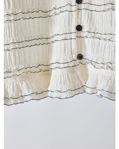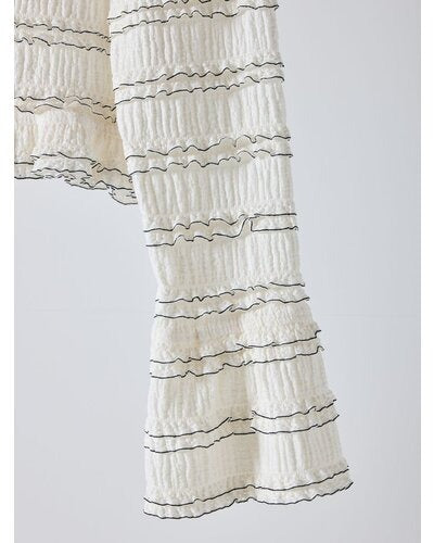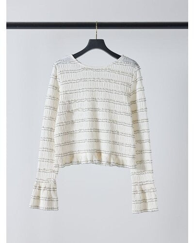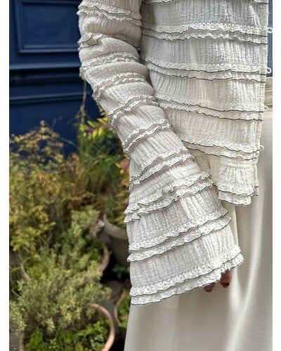 お袖には少し長めのフリルをあしらい、女性らしい手元を演出します。