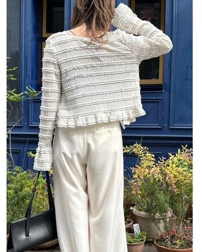 カーディガンとしても、プルオーバーとしても楽しめる――春の気分を軽やかに運ぶ一枚です。
