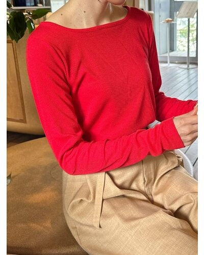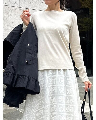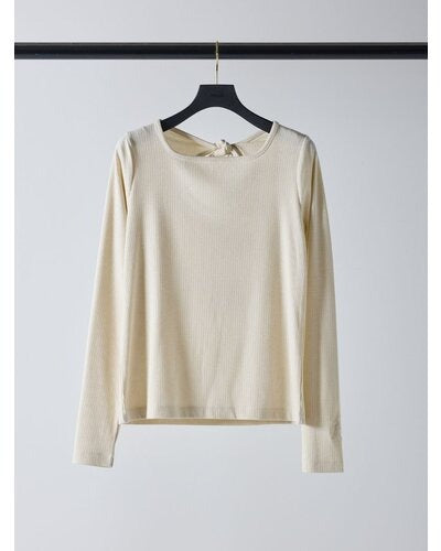 さりげないラメが織り込まれたリブ素材が、動くたびにほんのりと輝くロングスリーブTシャツ。