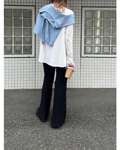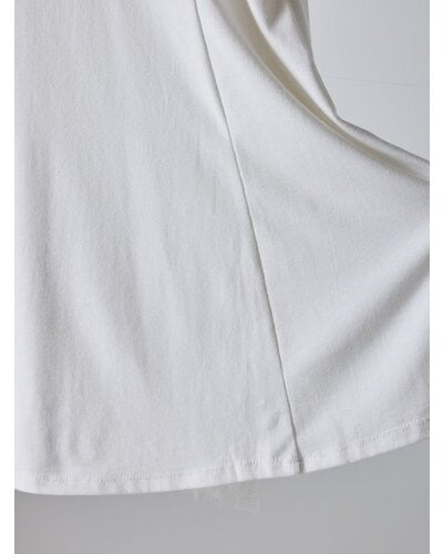 肌触りの良いカットソー素材で着心地は抜群ながら、ふんわりと広がるシルエットがカジュアルになりすぎず上品な印象に。