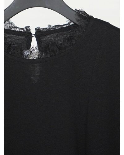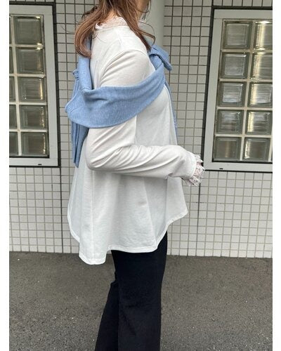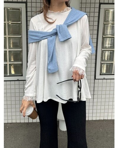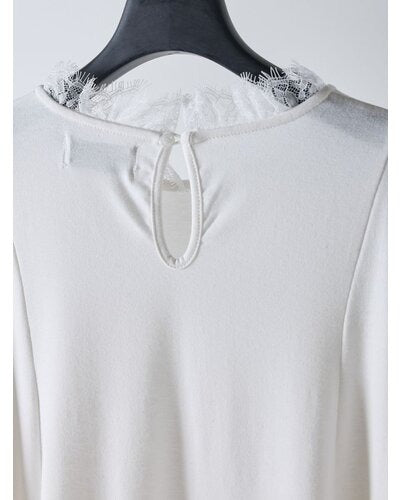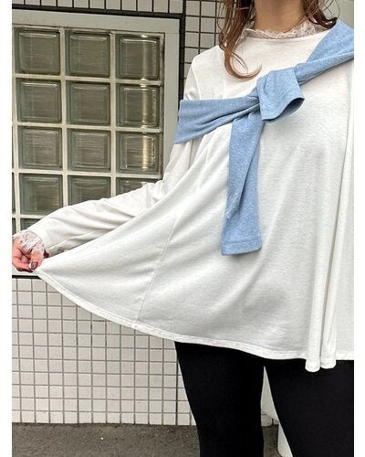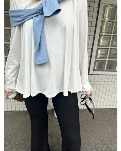 「繊細なレースが引き立つ、大人のフレアTシャツ。」