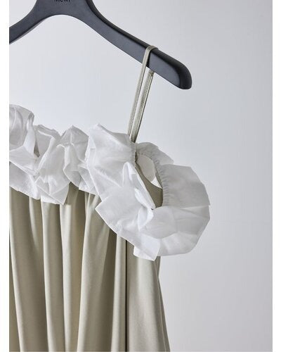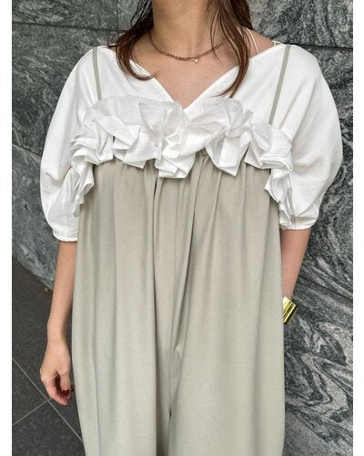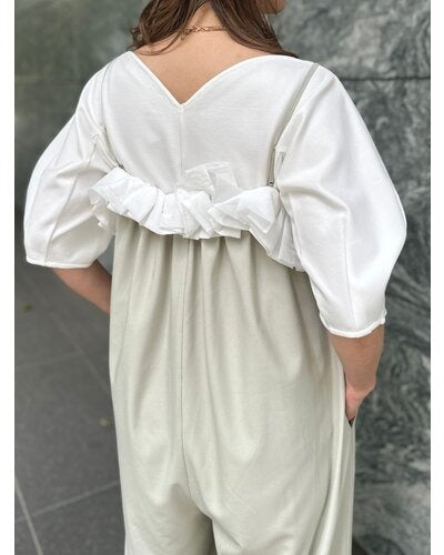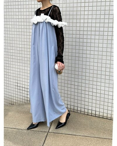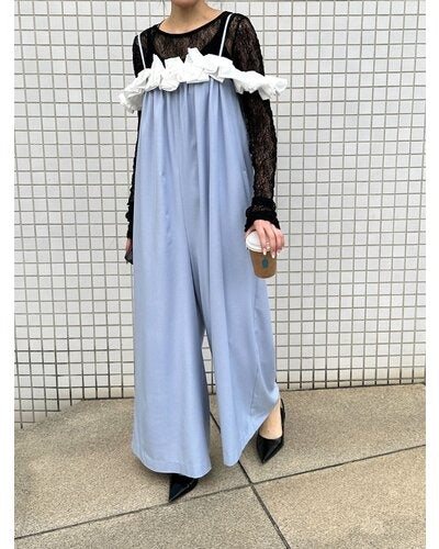ふわりとしたフリルをまとうような、特別感のあるサロペット。