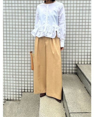 コンパクトな身頃との対比で甘くなりすぎず、スタイルアップ効果も抜群。