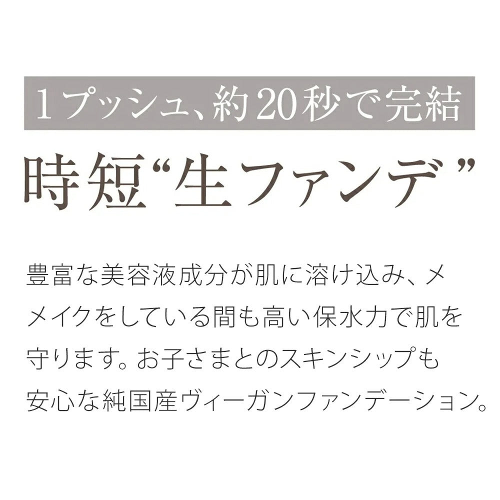 豊富な美容液成分が肌に溶け込み、メイクをしている間も高い保水力で肌を守ります。お子様とのスキンシップも安心な純国産ヴィーガンファンデーション