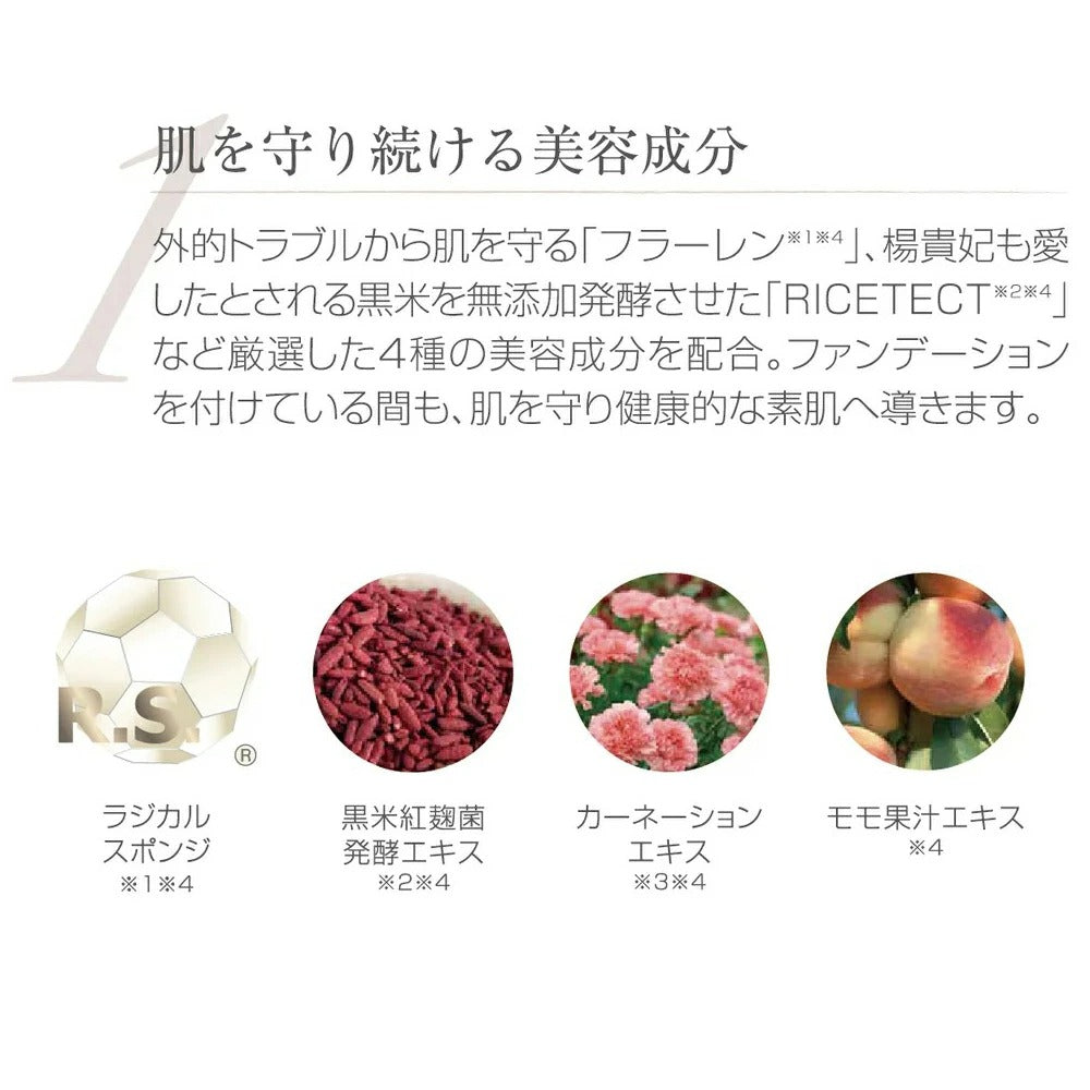 肌を守る事にこだわり、たどり着いた2つのチカラ。その高い美容効果から楊貴妃も愛したとされる黒米を虹麹菌により無添加発酵させたRICETECT※1※6を配合。ファンデーションを付けている間も、肌を守り美しく健康的な素肌へ導きます。