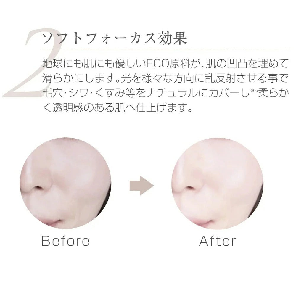 地球にも肌にも優しいECO原料が、肌の凸凹を埋めて滑らかにします。光を様々な方向に散乱させる事で毛穴・シワ・くすみ等をナチュラルにカバーし※5柔らかく透明感のある肌に仕上げます。